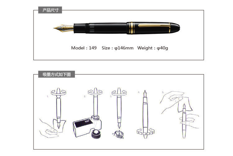 MONTBLANC万宝龙大班149系列镀金钢笔墨水笔F尖115383