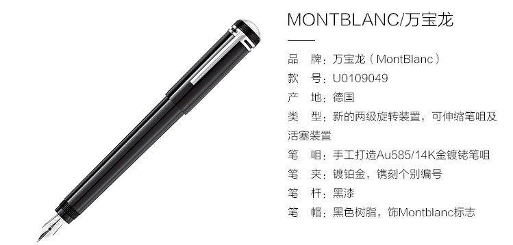MontBlanc万宝龙限量版1912传承系列黑色树脂伸缩镀铂金墨水笔109049
