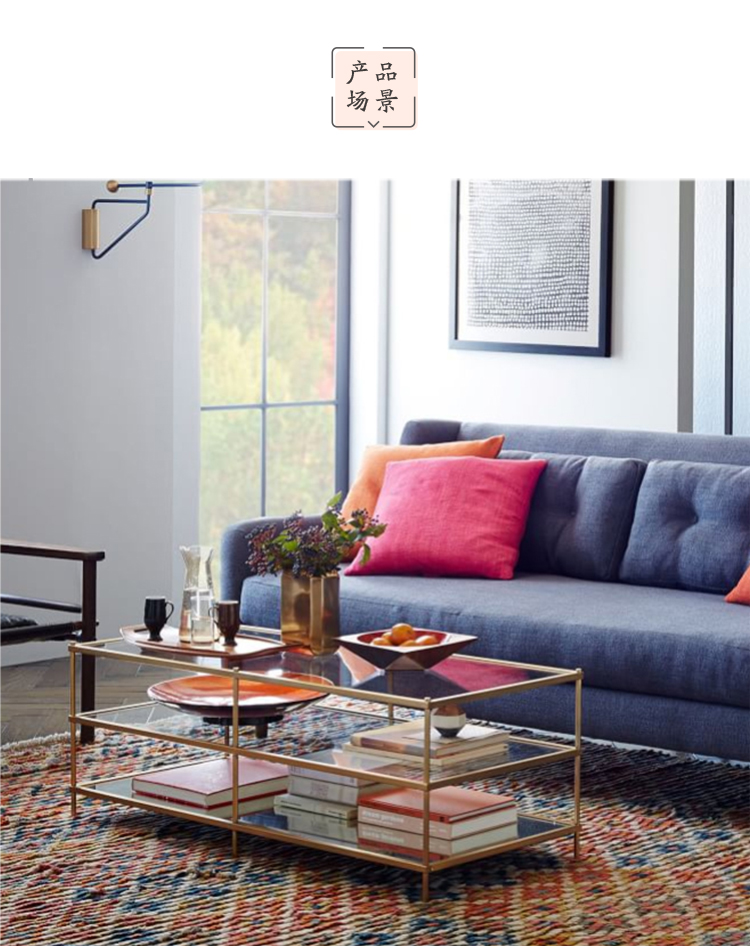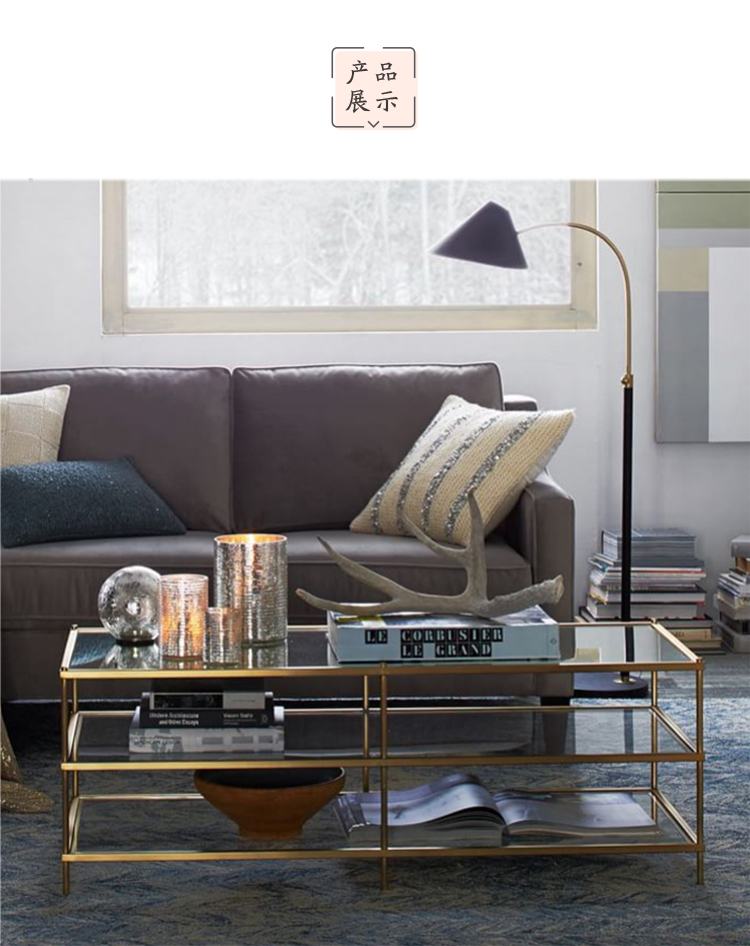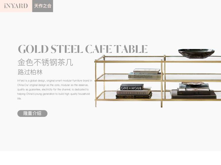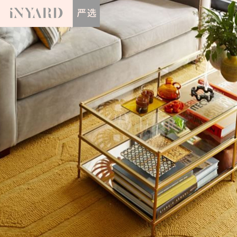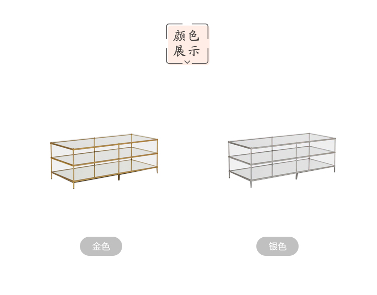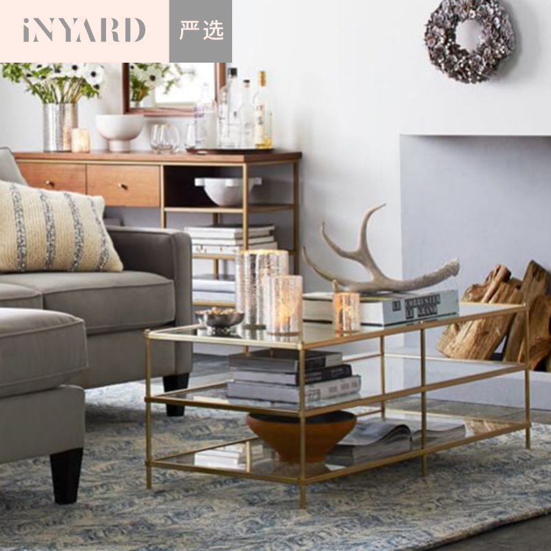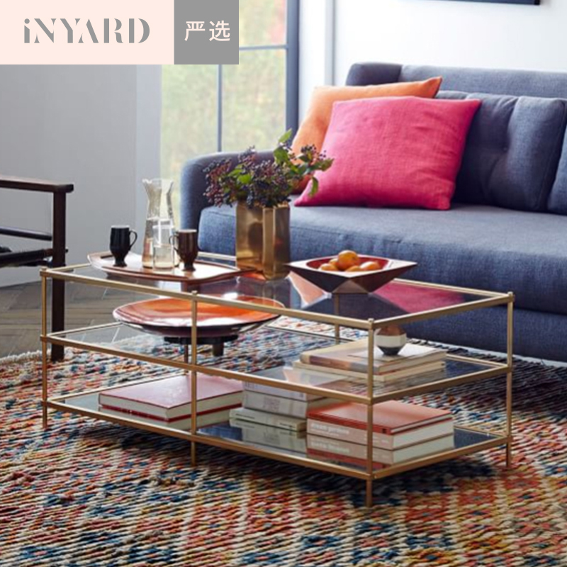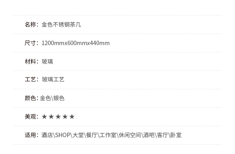 「InYard严选」1.2米金属金银色北欧现代简约线条玻璃不锈钢茶几