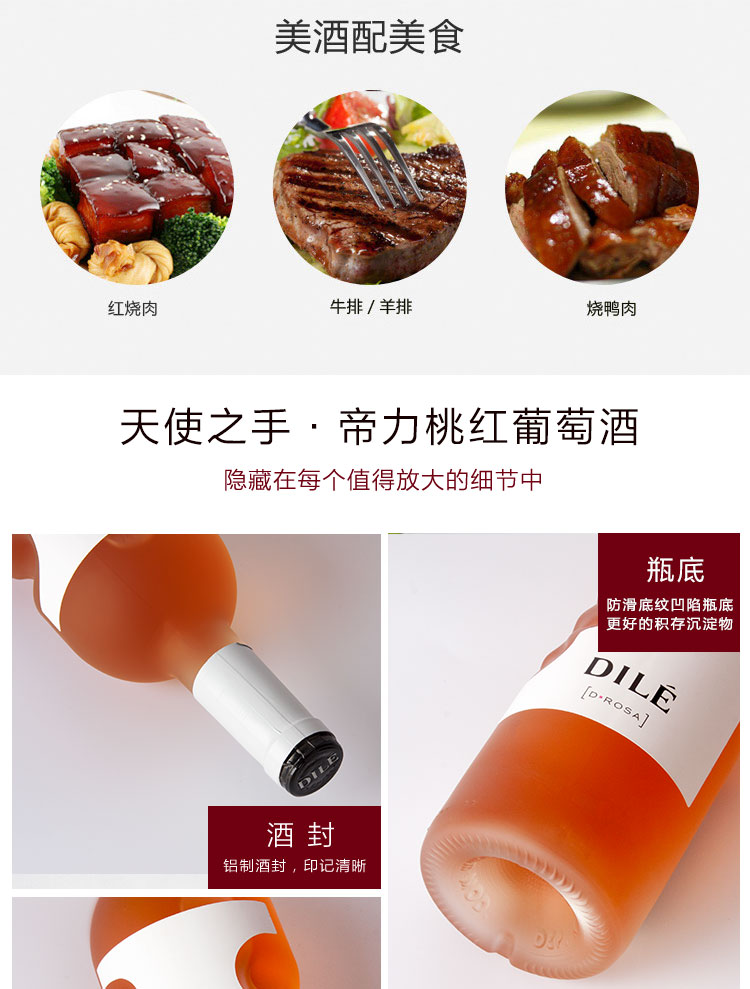 天使上帝之手意大利进口帝力DILE桃红酒干型桃红葡萄酒女士甜酒
