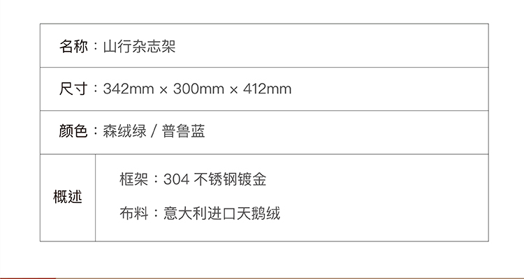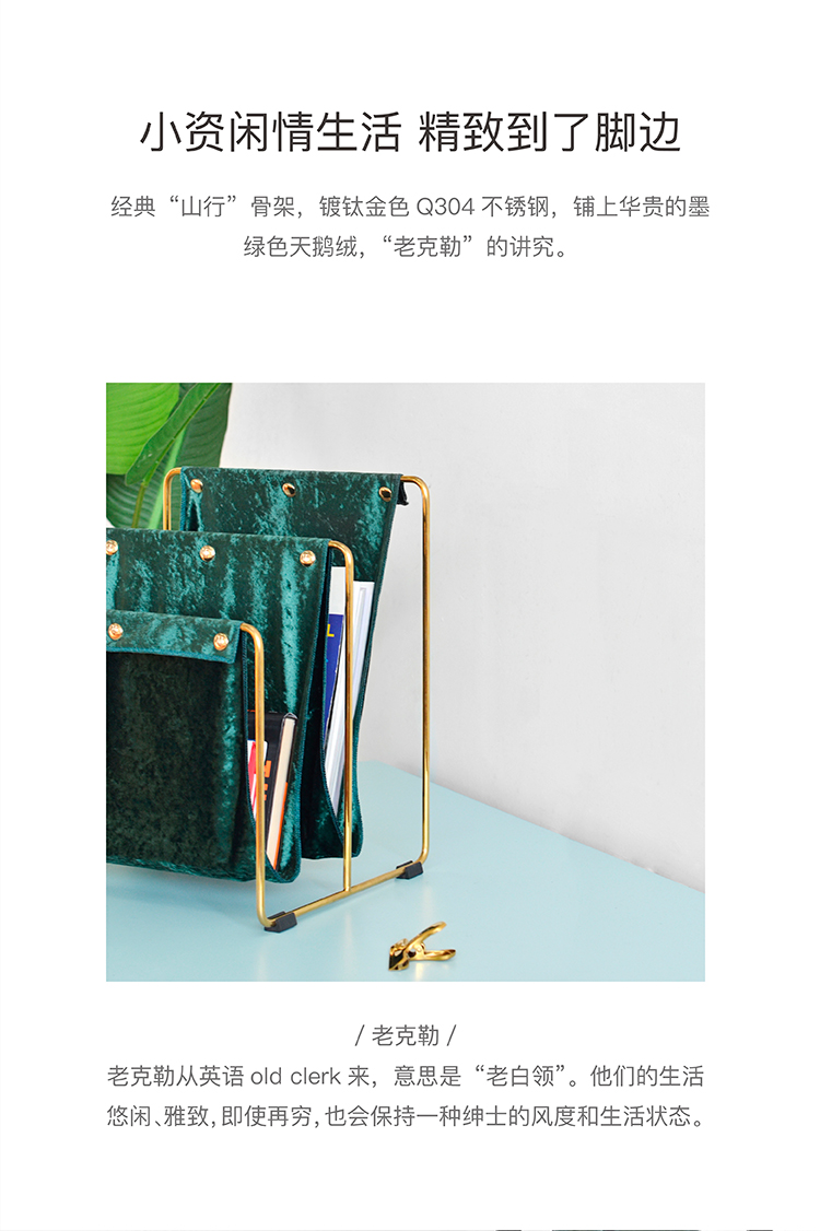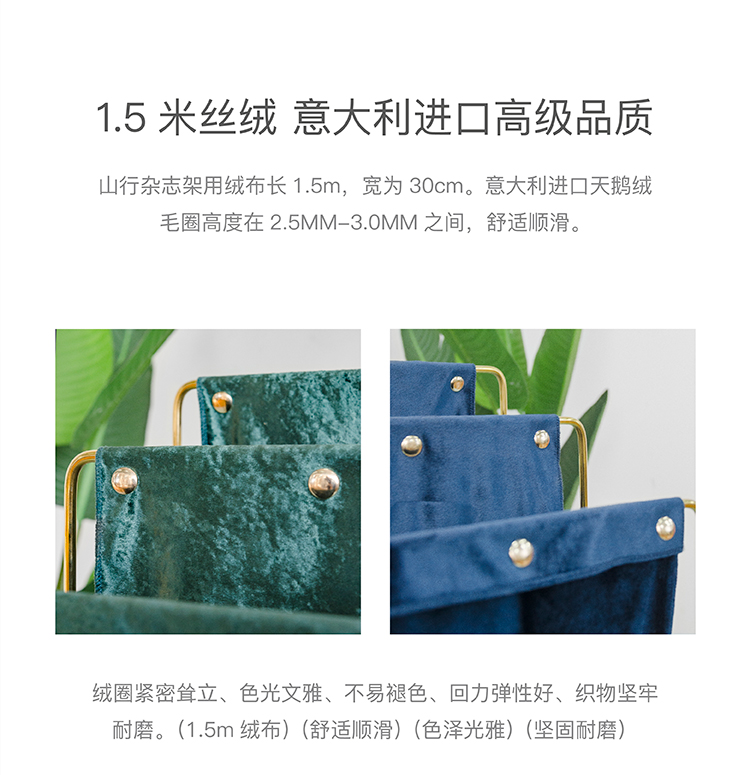 [InYard原创]山行杂志架/北欧镀金天鹅绒收纳架/客厅卧室储物架 举报 极有家认证[原创设计]:专属设计,限量生产,只为你造 商家承诺:提供“免费送装”服务,百城内包物流、包配送、包安装