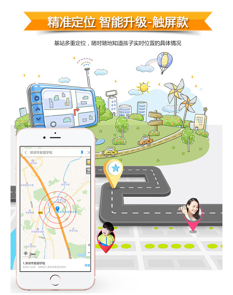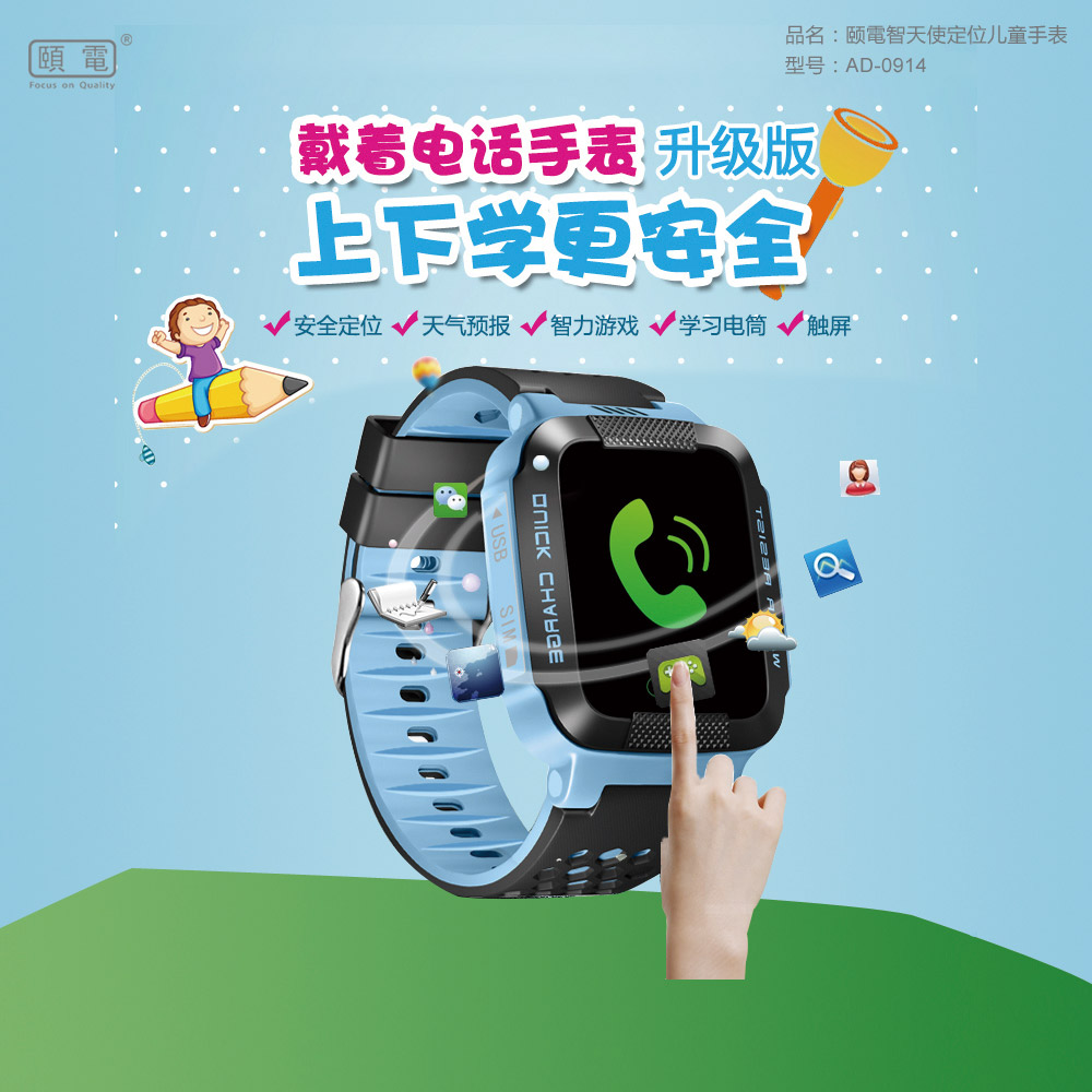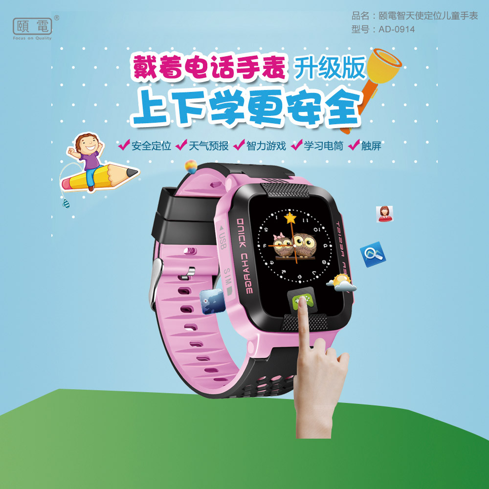 颐电 智天使定位儿童手表 触摸屏插卡照明灯GPS儿童手表 AD-0914