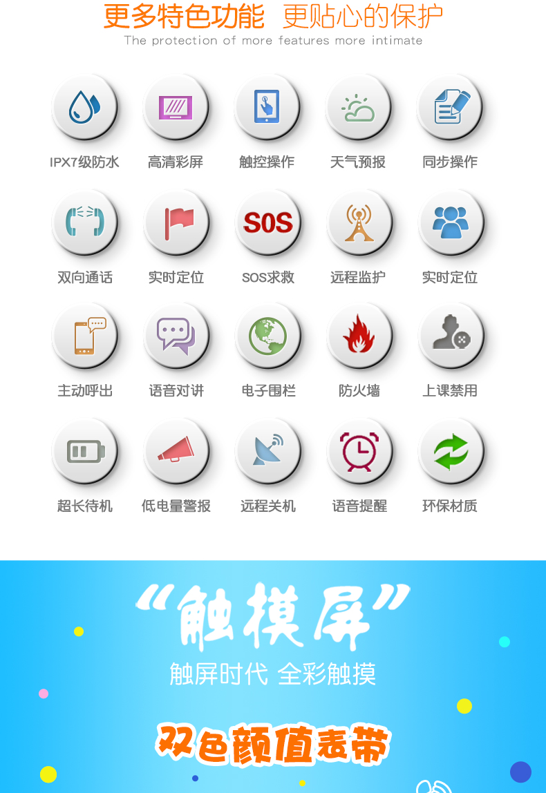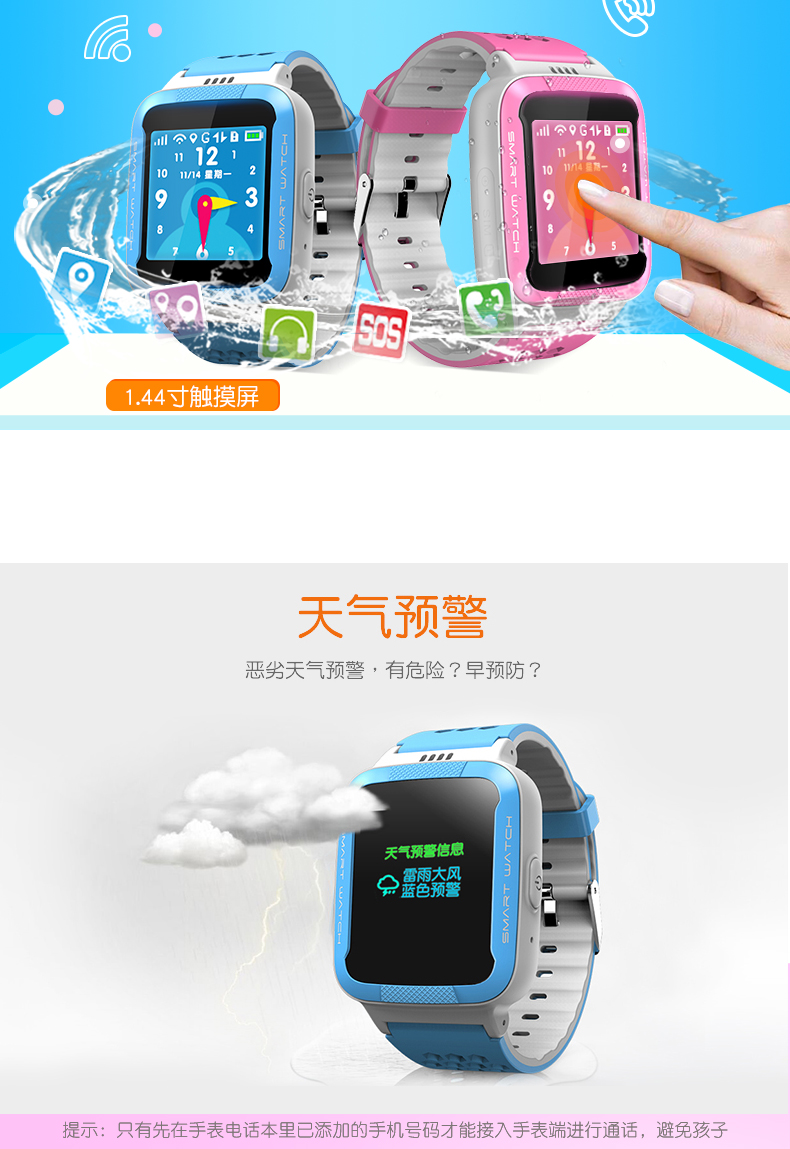 2、触摸屏手表,含天气预警,实时定位,预防走失,电子围栏,智能预警;