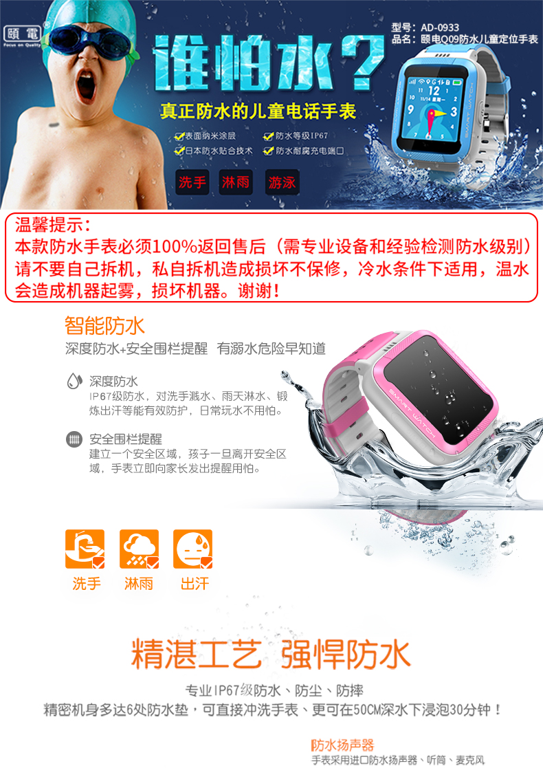 颐电 Q09防水儿童定位手表 联通移动插卡触摸屏智能手表 AD-0933