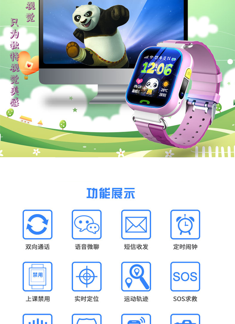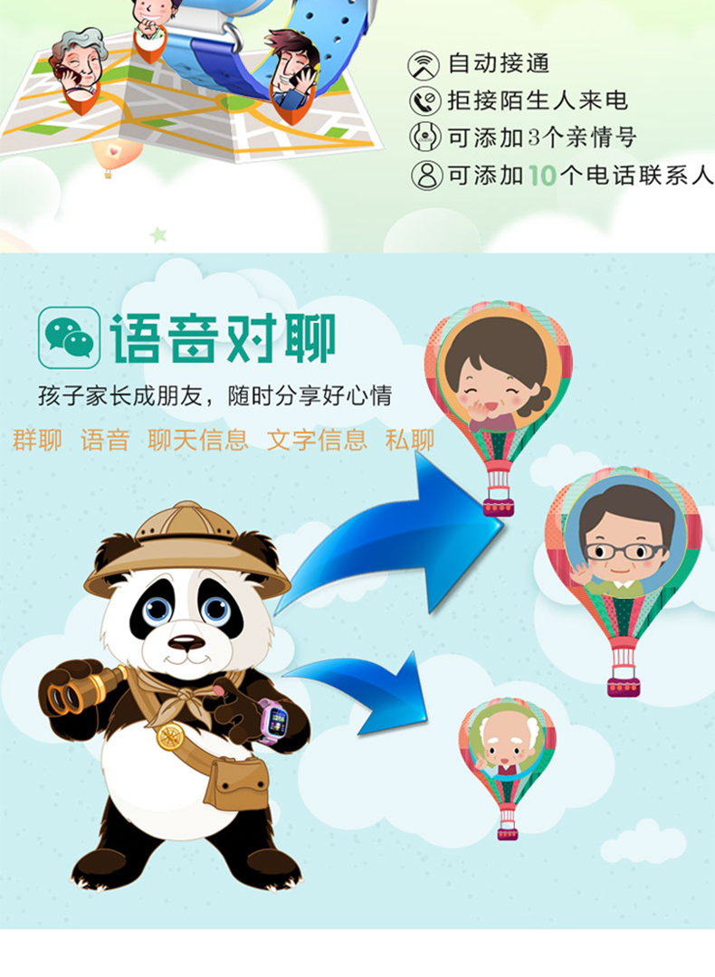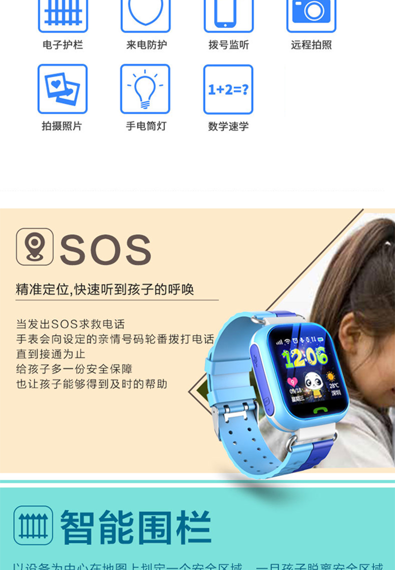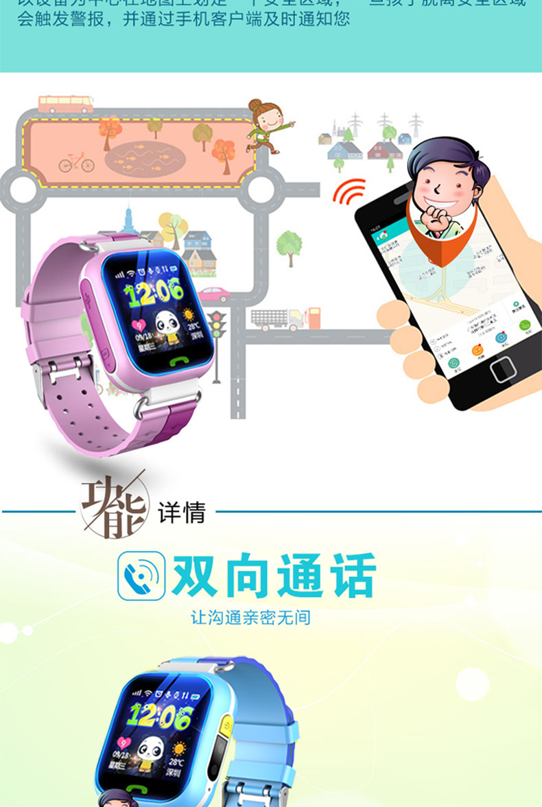 2、双向通话,实时定位,预防走失,电子围栏,智能预警;