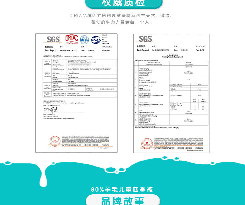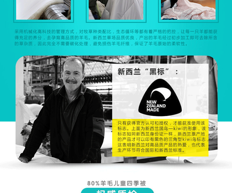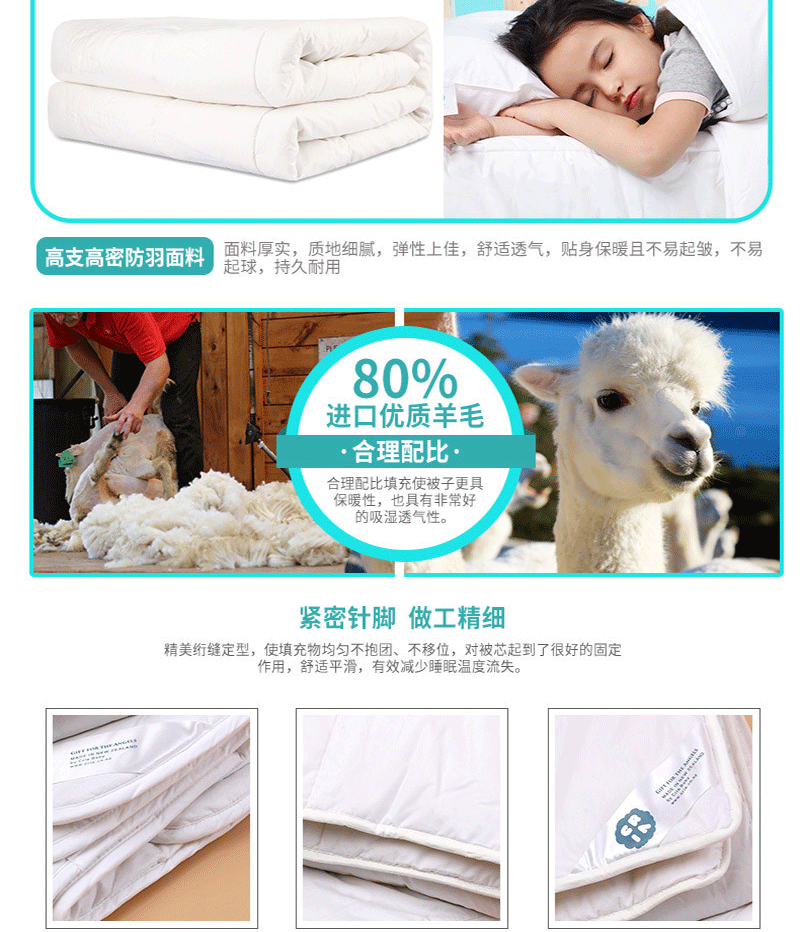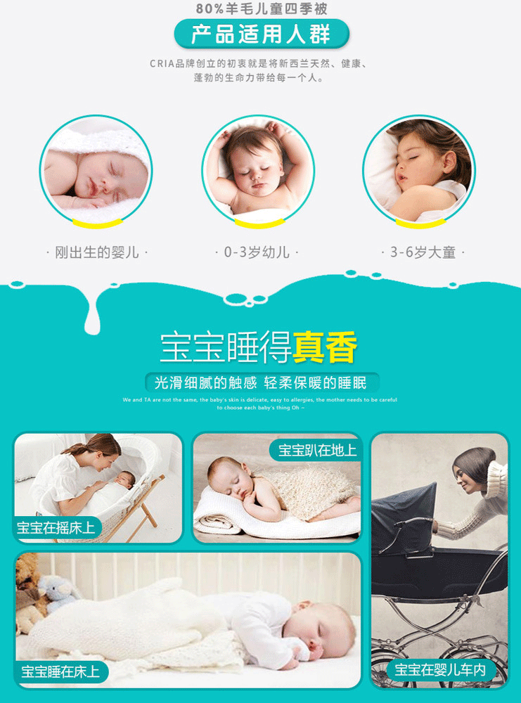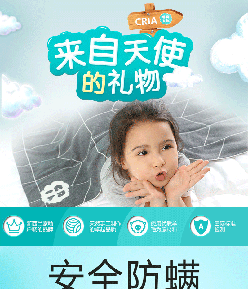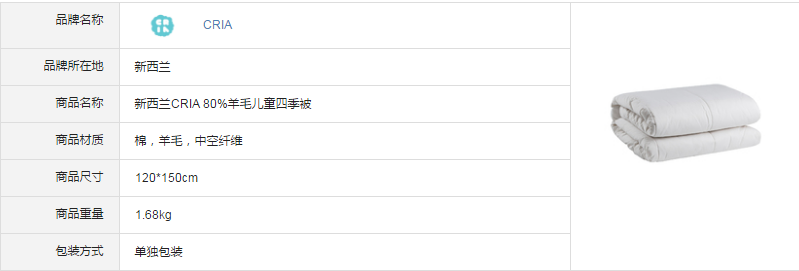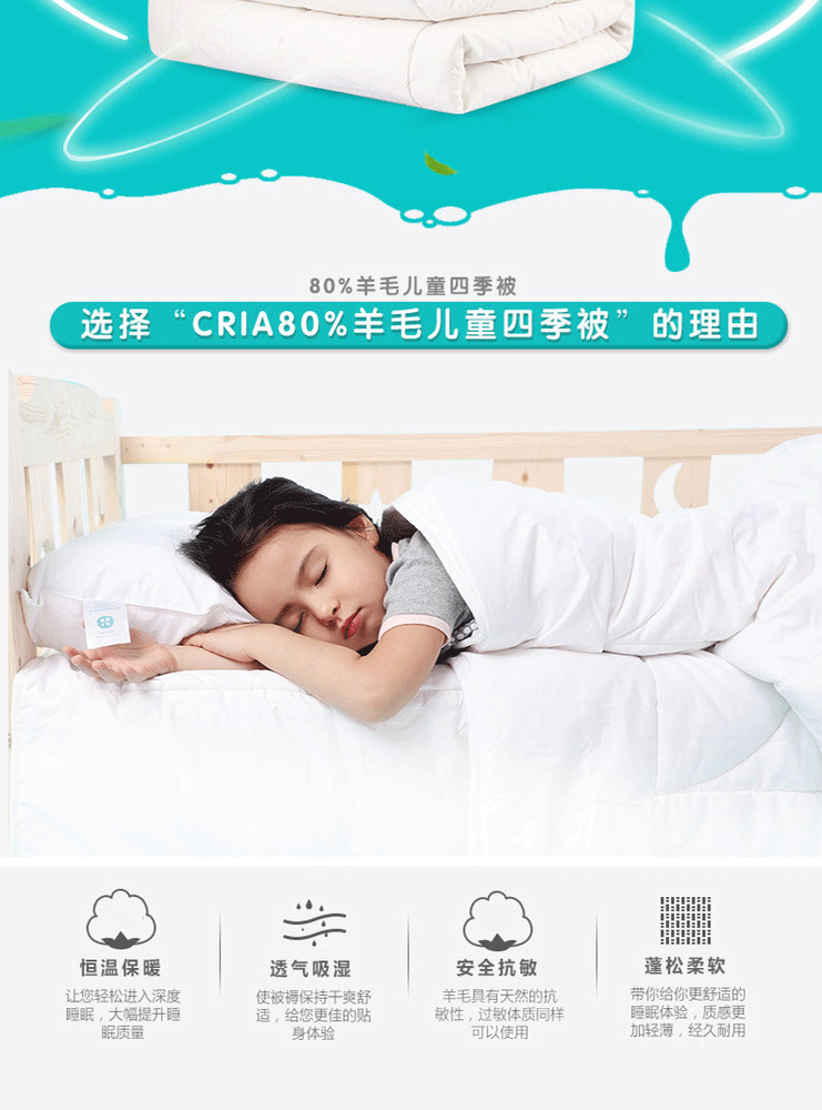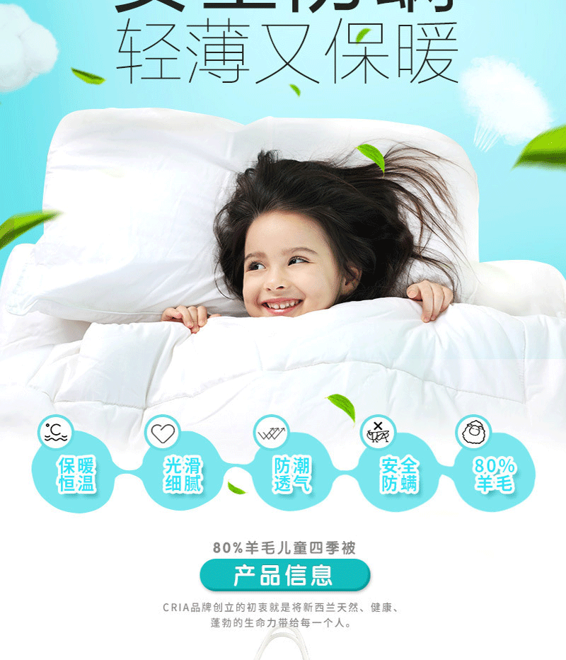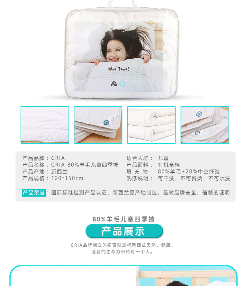 新西兰原产CRIA 80%羊毛全棉儿童四季被羊毛被