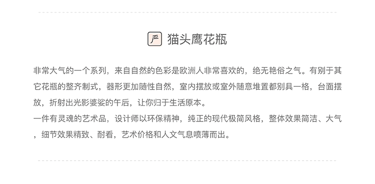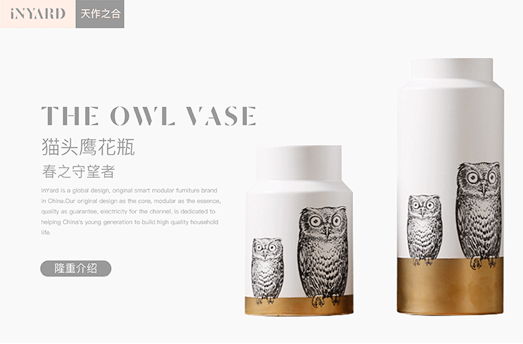 「InYard严选」陶瓷创意花瓶插花器客厅家居装饰品摆件摆设猫头鹰 举报 极有家认证[原创设计]:专属设计,限量生产,只为你造 商家承诺:提供“材质保真”服务,如材质与描述不符可获赔200%