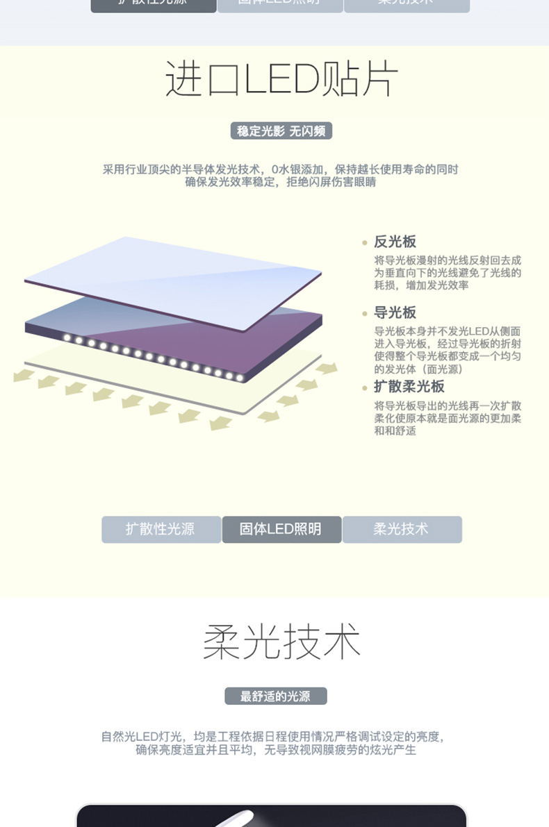1、扩散性光源,柔光技术无闪屏,非点光源无重影;