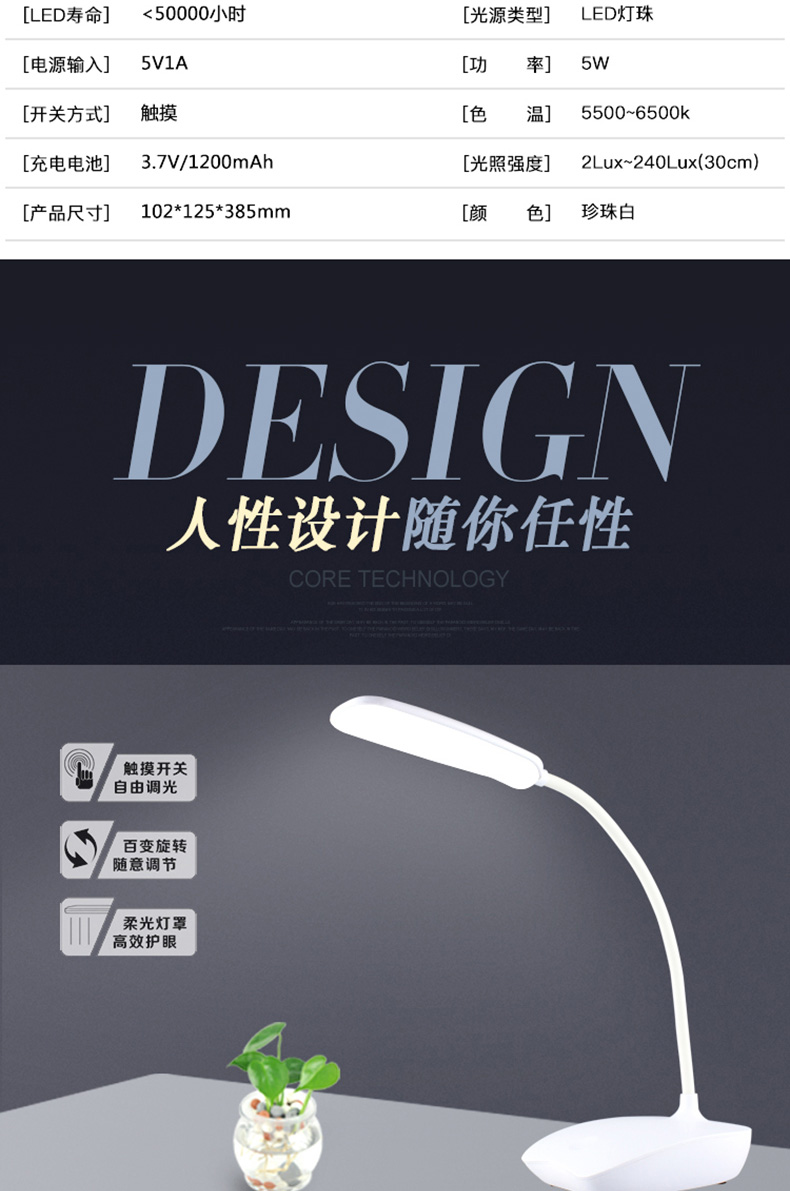 蓝枫(BlueMaple) LED护眼小台灯 柔光技术无闪屏 AD-0025