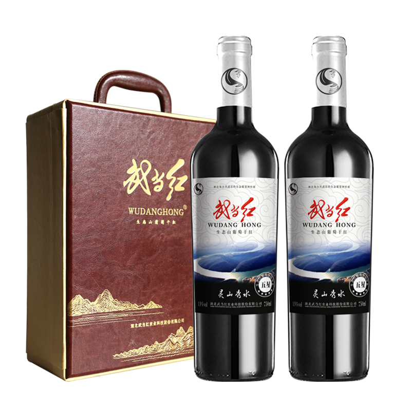 · 商品名称:【武当红】灵山秀水—五星(两支+皮盒) 武当红生态山葡萄酒灵山秀水系列750ml*2皮质礼盒