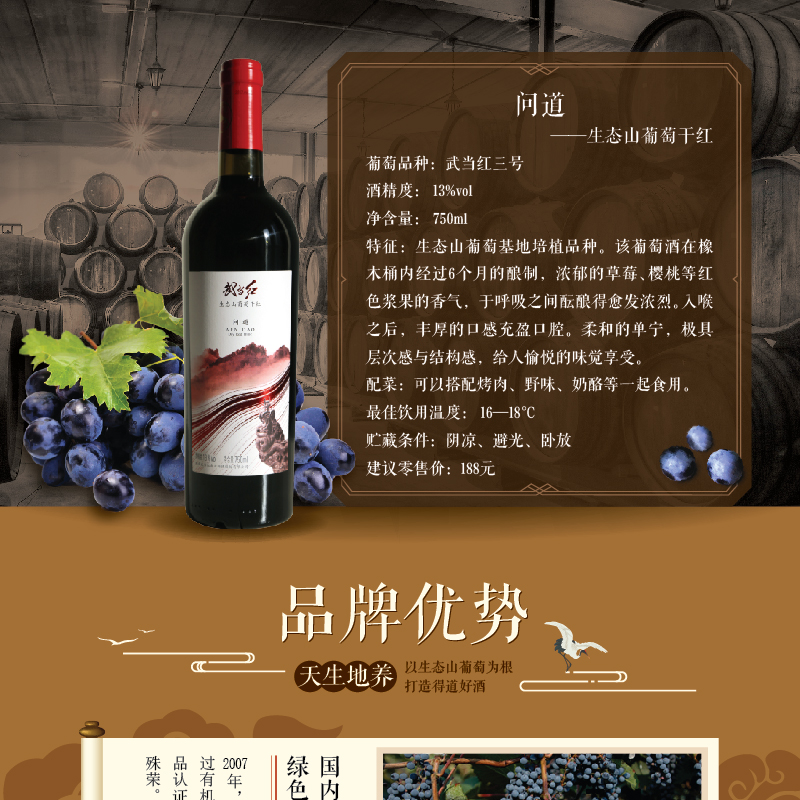 · 商品名称:【武当红】问道(两支+皮盒) 武当红生态山葡萄酒道系列问道750ml*2皮质礼盒