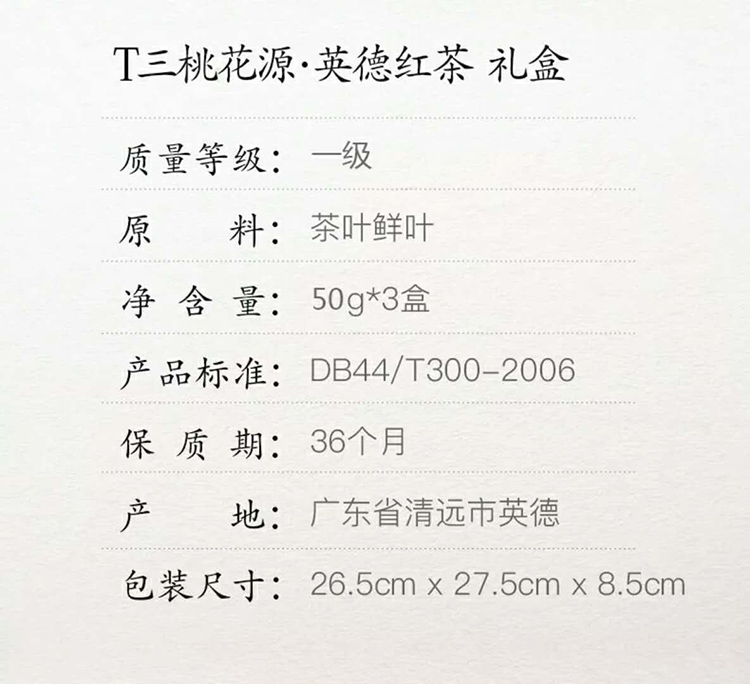 T三茶【桃花源英德红茶】高档礼盒装 特级送礼好茶叶 3罐*50克
