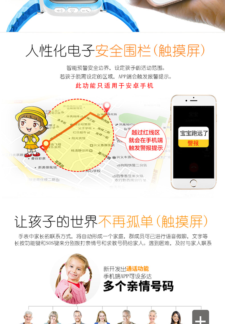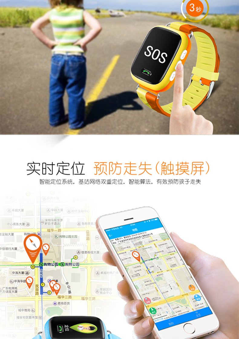 3、触摸屏精准GPS定位,实时追踪,实时定位,预防走失,
