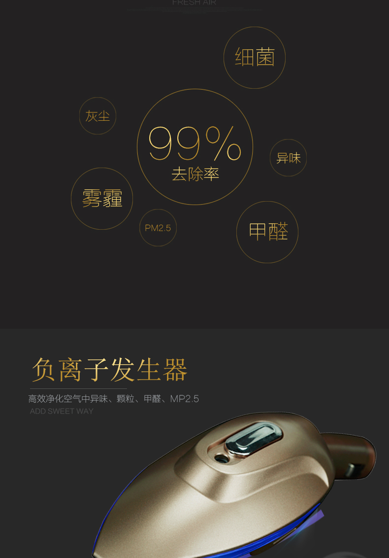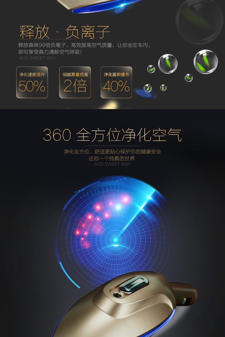 3、高效释放负离子,车内享受森林般的新鲜空气;