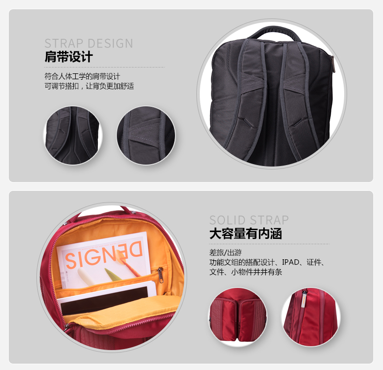 内部结构: 网袋 拉链暗袋 手机袋 夹层拉链袋 电脑插袋