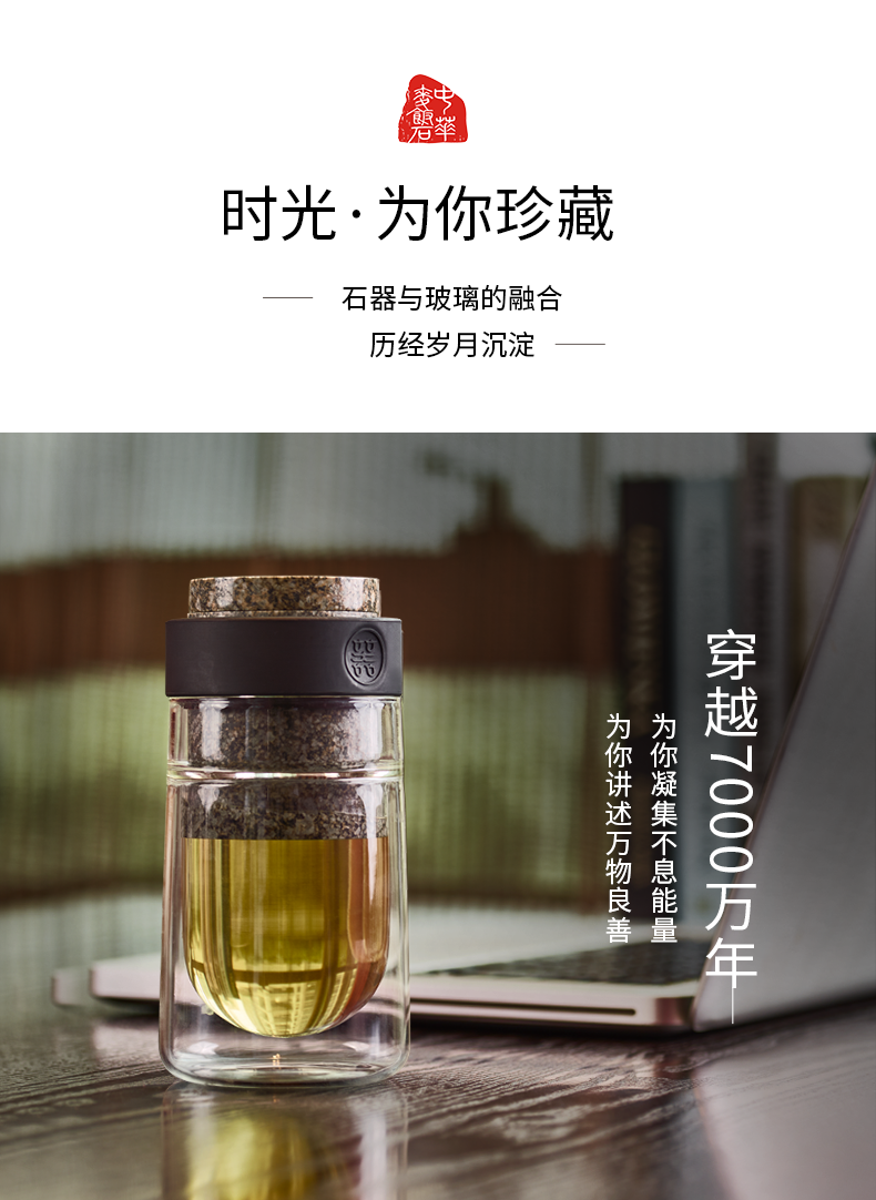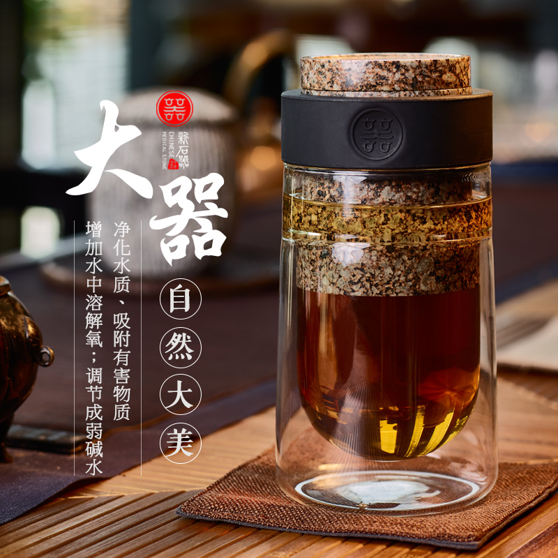 优高雅 内蒙古中华麦饭石水杯 飘逸泡茶杯 麦饭石水泡茶冲茶器 男女送礼