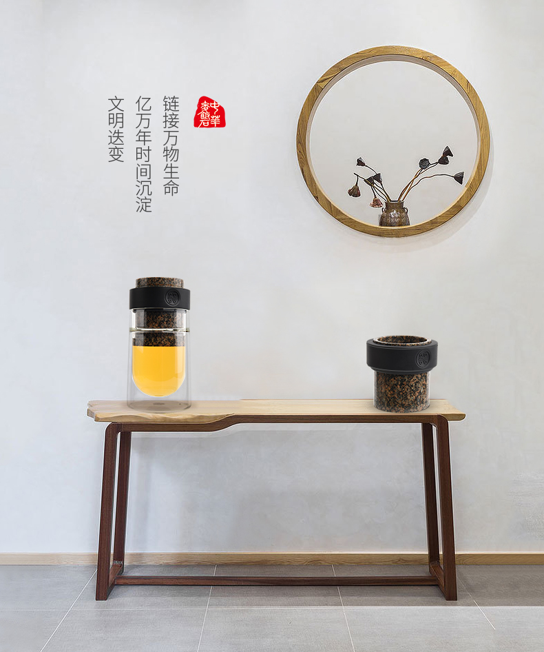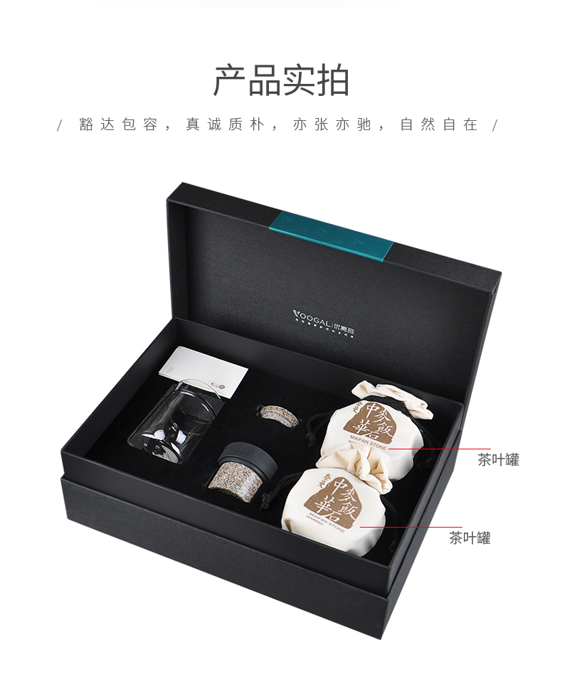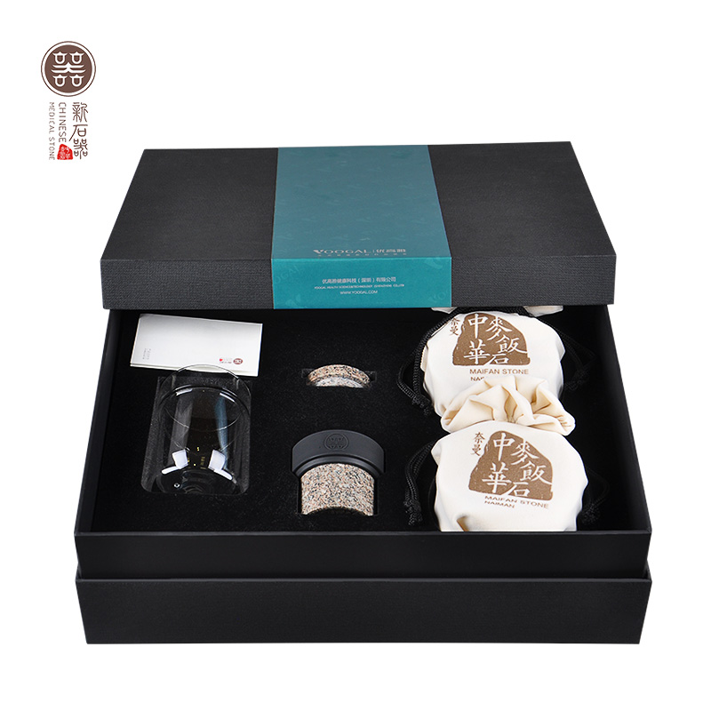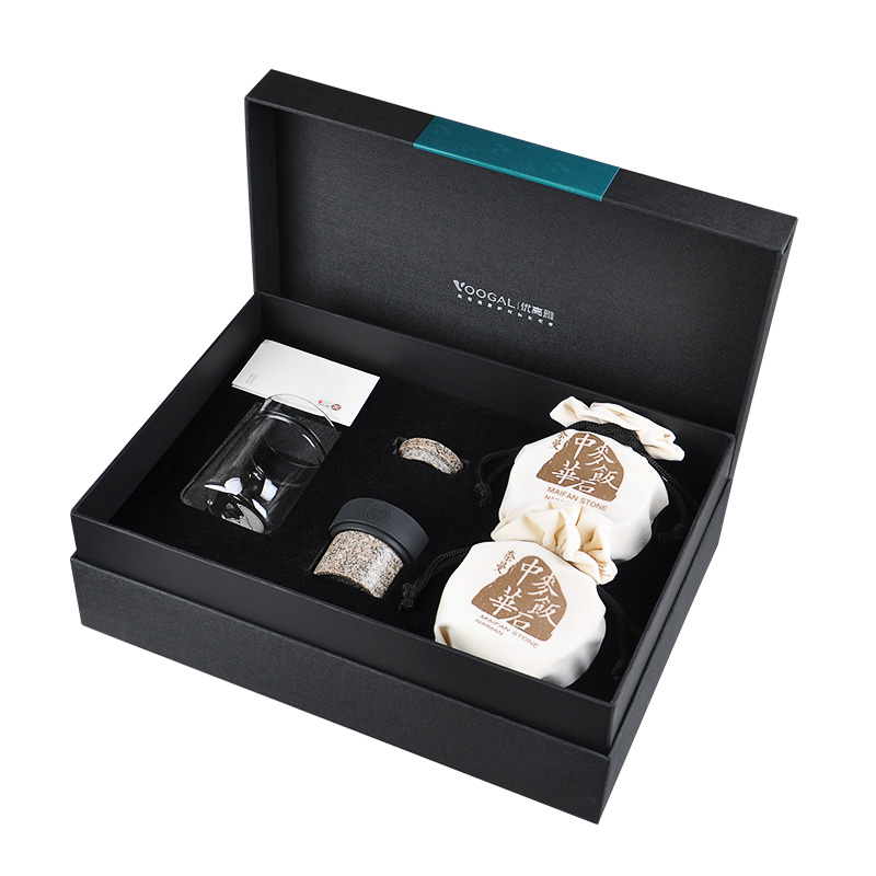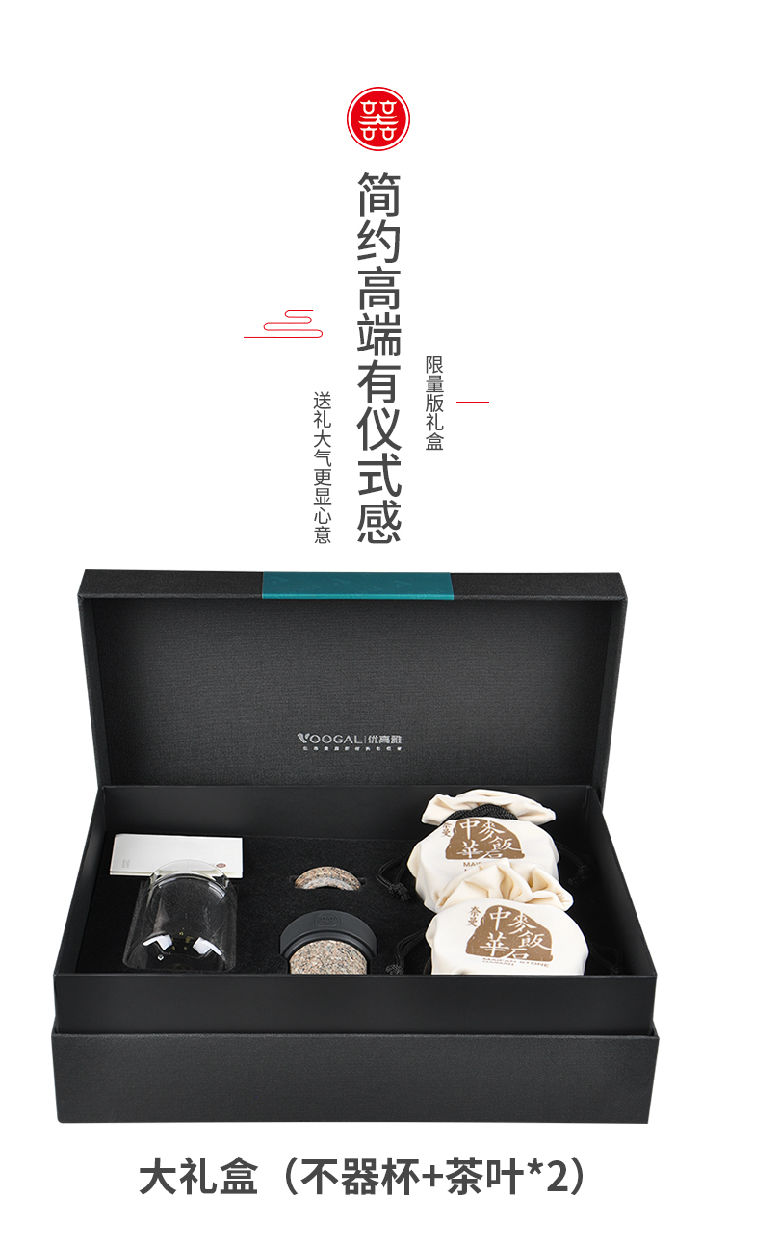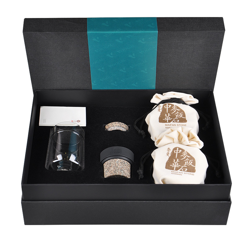 优高雅 中华麦饭石茶水杯 麦饭石原石养生杯 保健杯不器飘逸杯+茶叶罐礼盒套装 茶具送礼 大礼盒