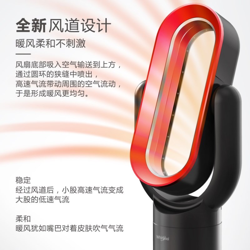 惠而浦无叶风扇超静音冷暖两用家用电风扇立式速热取暖器暖风机