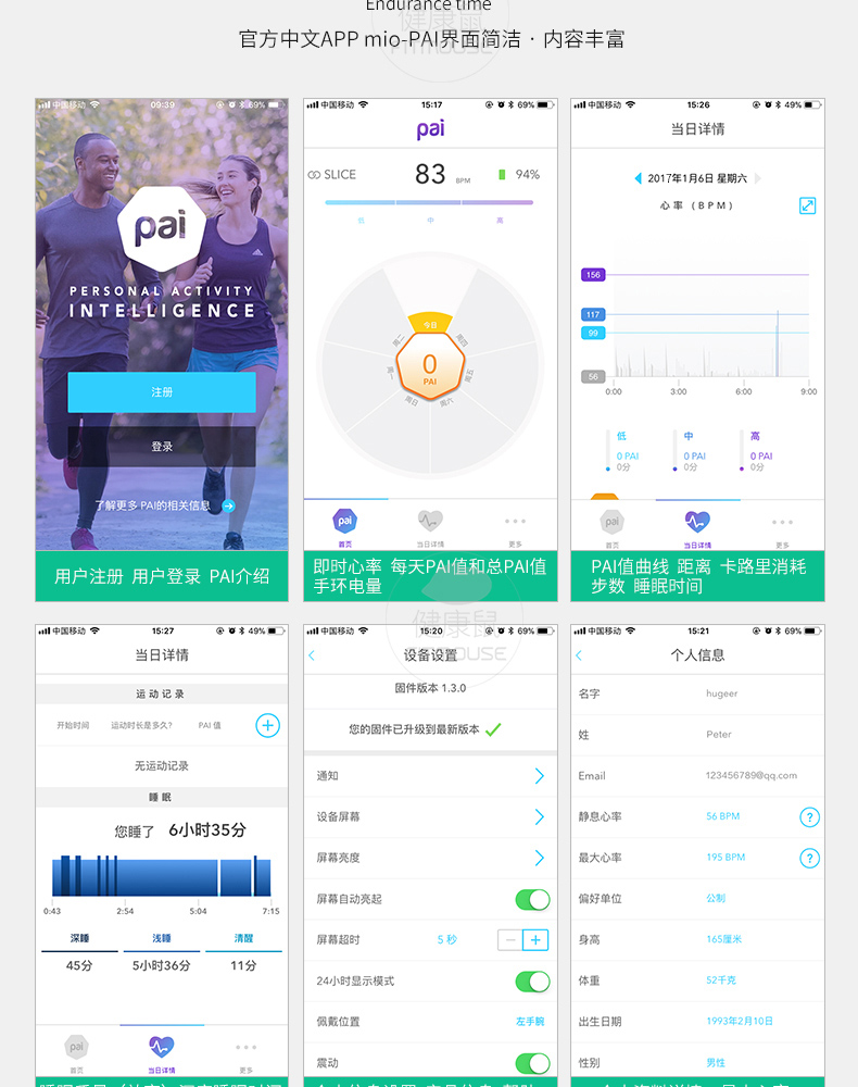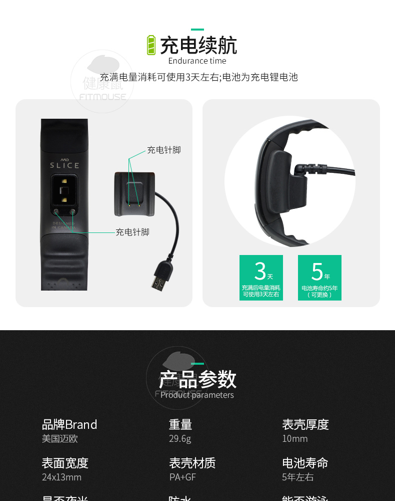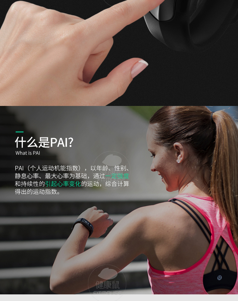 采用最先进的超级光电感应技术感应心率,无须胸带,无需触摸,连续监测,通过蓝牙4.0或者ANT+连接手机应用程序和运动设备