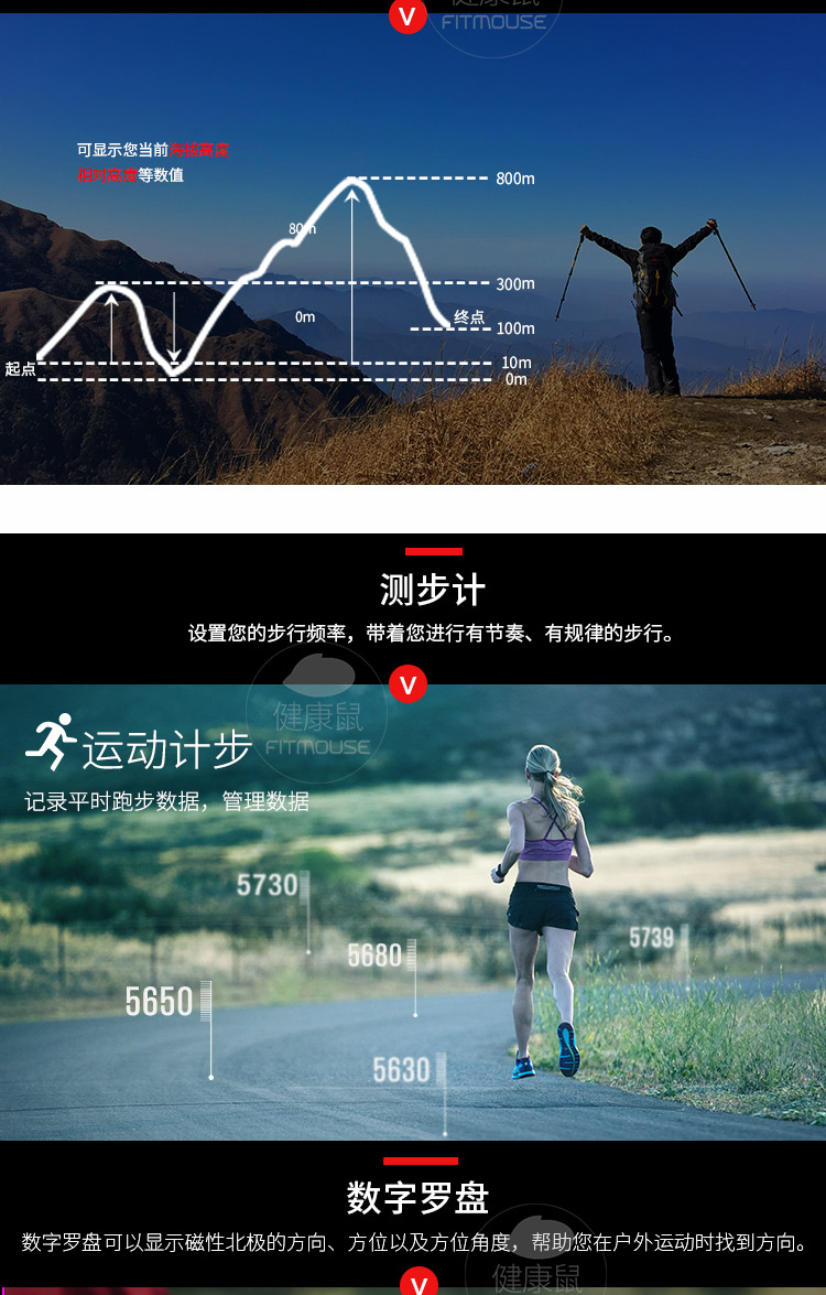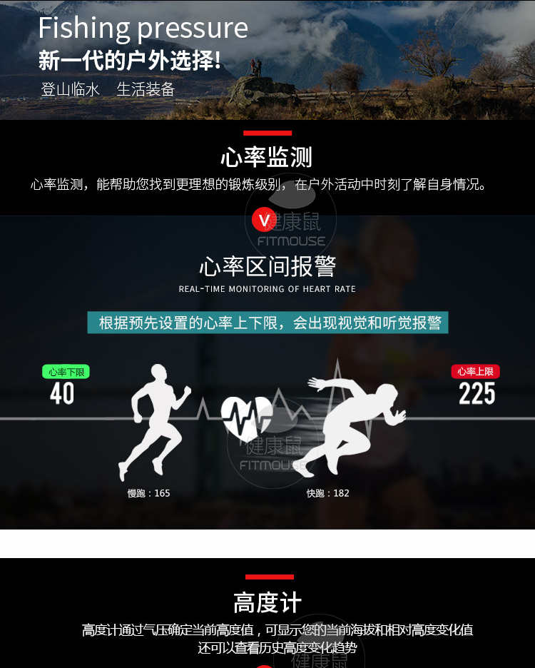 胸带式监测连续心率的户外全功能型手表