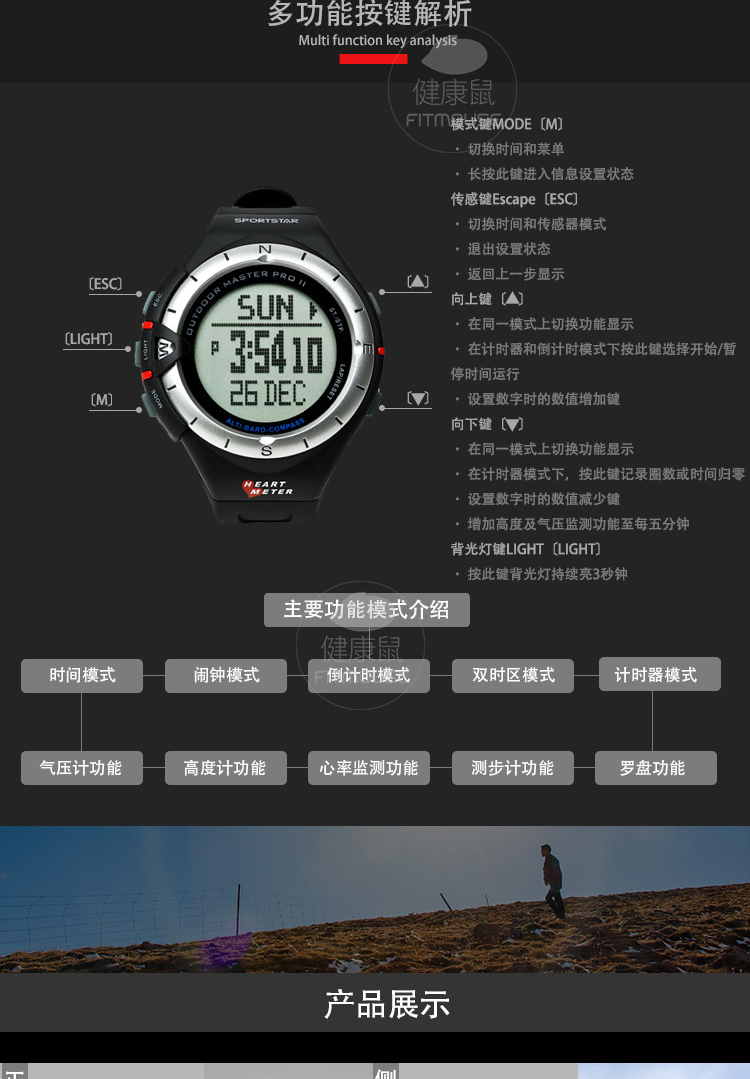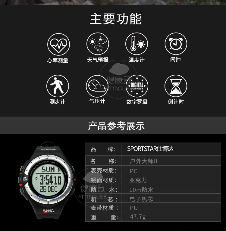 仕博达(SPORTSTAR)户外大师II登山表海拔高度气压罗盘防水户外运动心率表有胸带