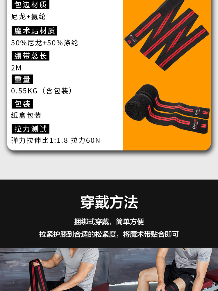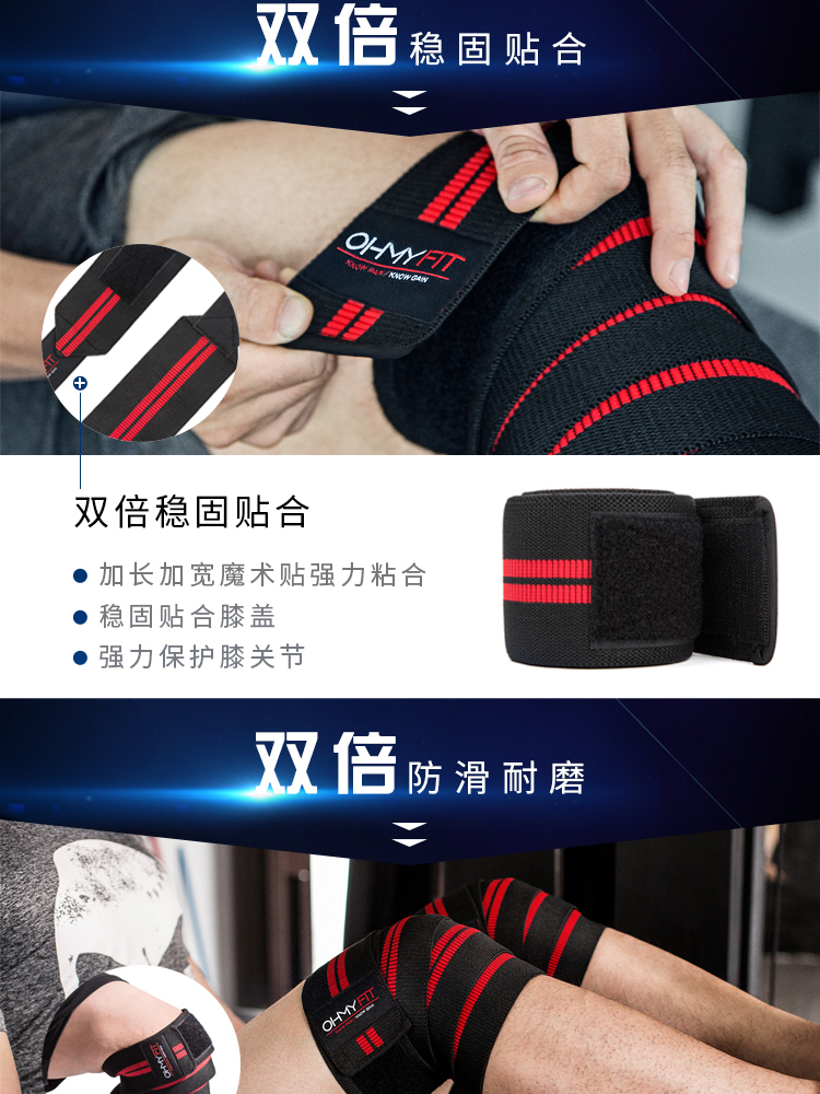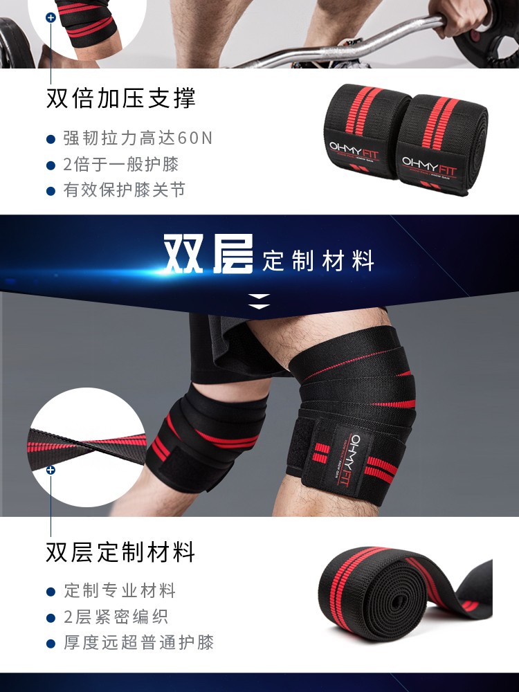 OHMY运动健身护膝2019男女器械训练深蹲防护增压护具膝盖绑带 保护膝盖 防止损伤 稳固贴合 放心健身