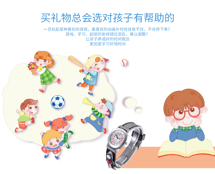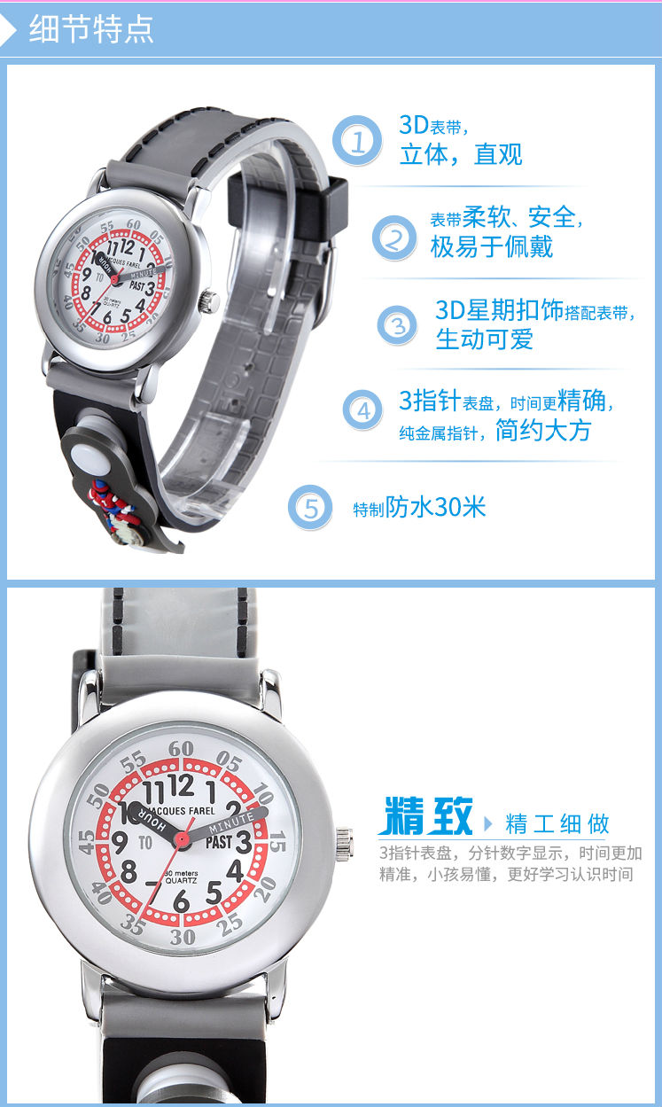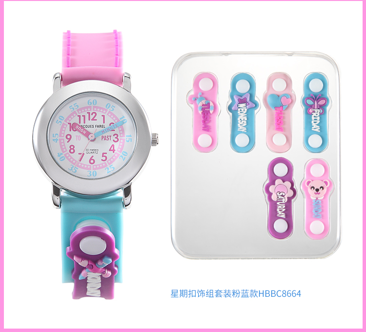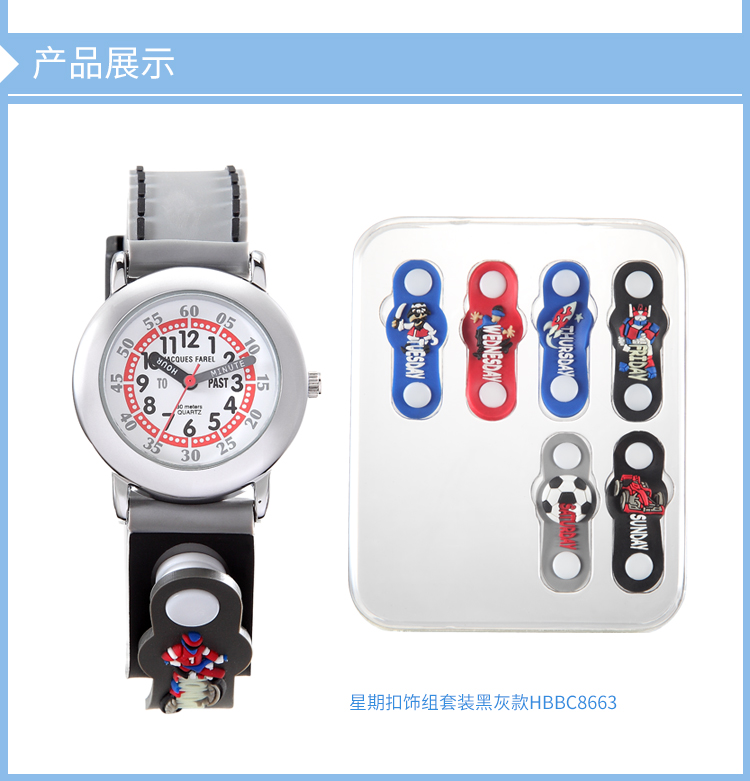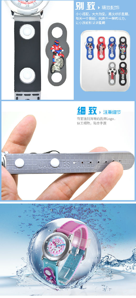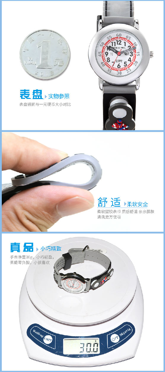 柔软硅胶3D儿童非智能无辐射防水男学生卡通手表星期装饰扣童表礼盒组