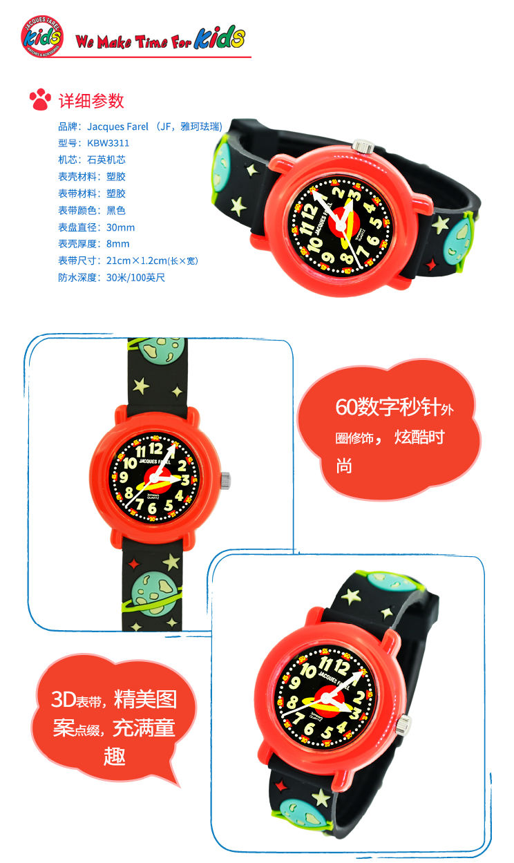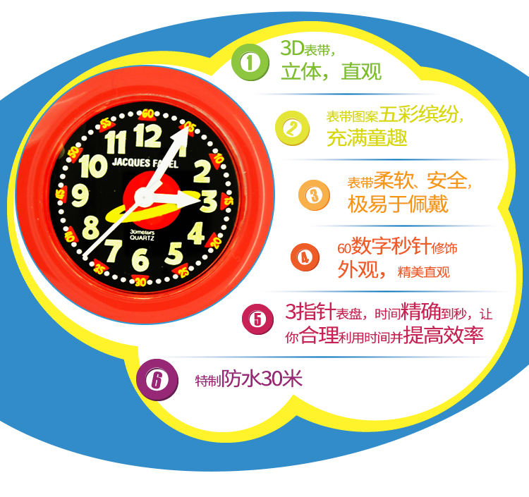 雅珂珐瑞3D彩带男女儿童手表 柔软硅胶