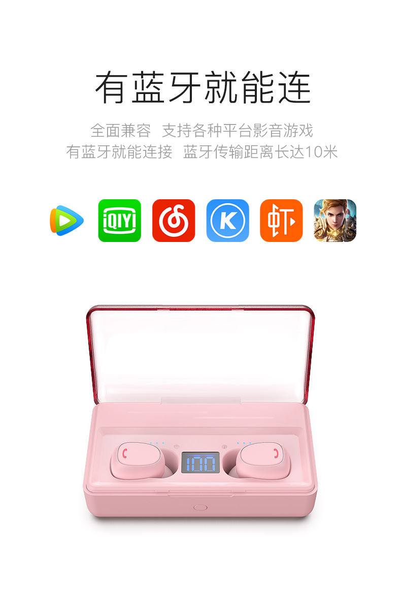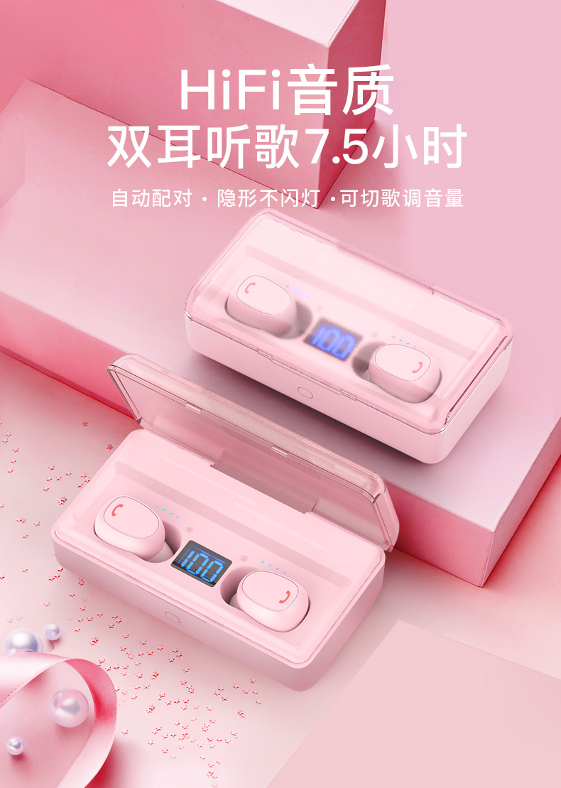 无线蓝牙耳机TWS迷你双耳入耳塞式时尚耳机自带充电宝