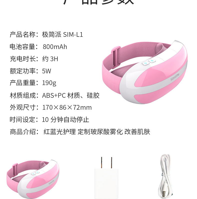 眼部美容仪 去黑眼圈眼袋神器 喷雾补水嫩肤 红蓝光淡化细纹美眼仪 粉红色