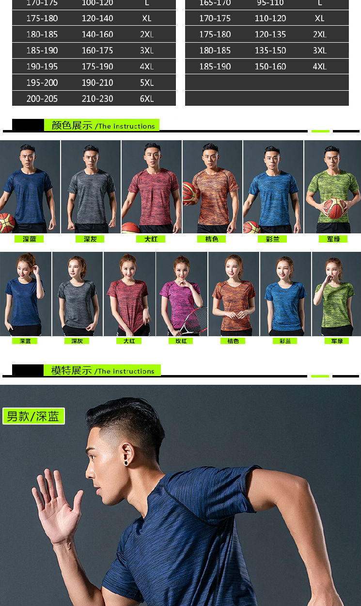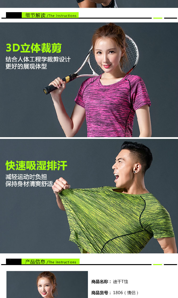厂家直销情侣速干T恤 夏季短袖运动圆领衫跑步运动健身时尚速干衣