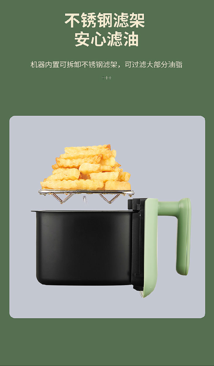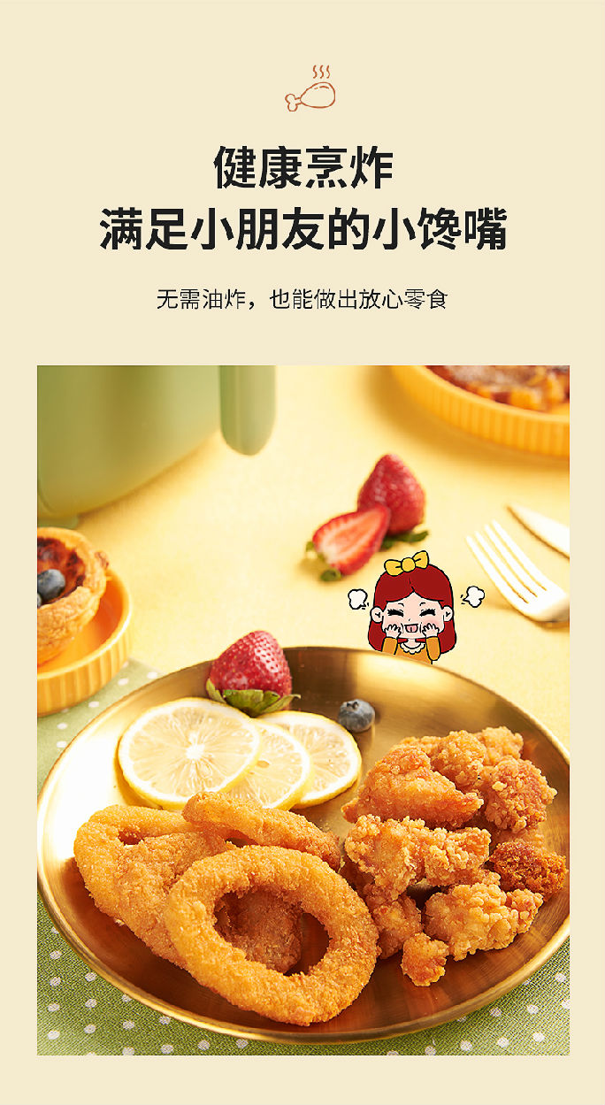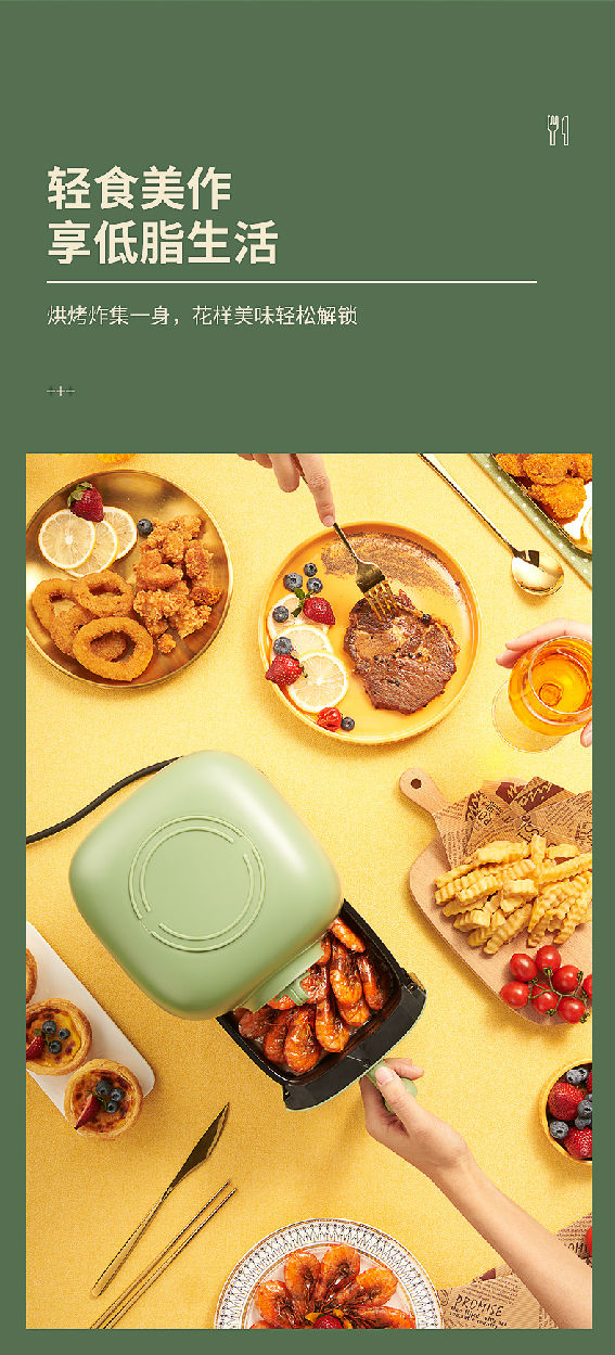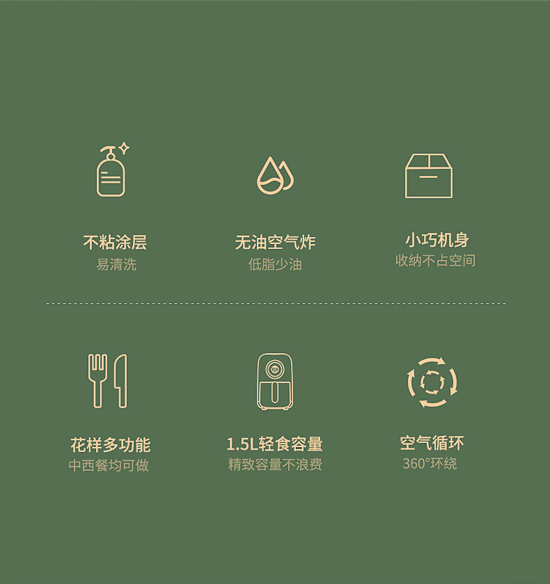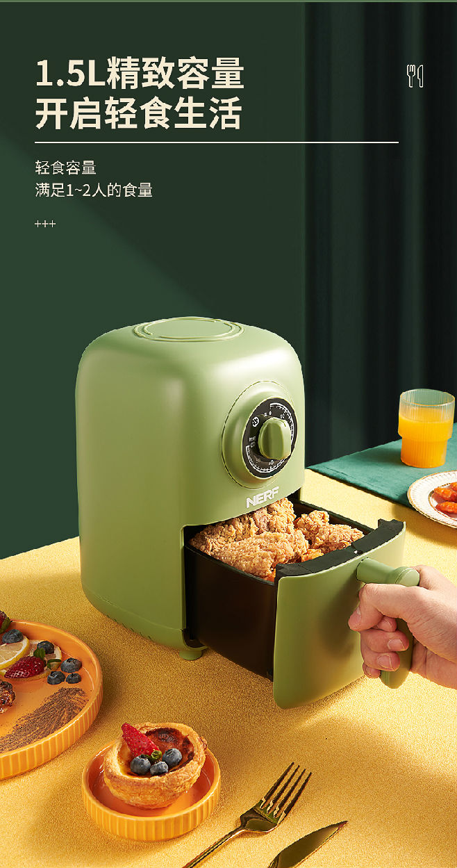 1.5L轻食容量,小巧易收纳,不占涂层易清洗,低脂少油更健康