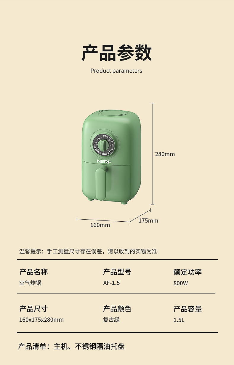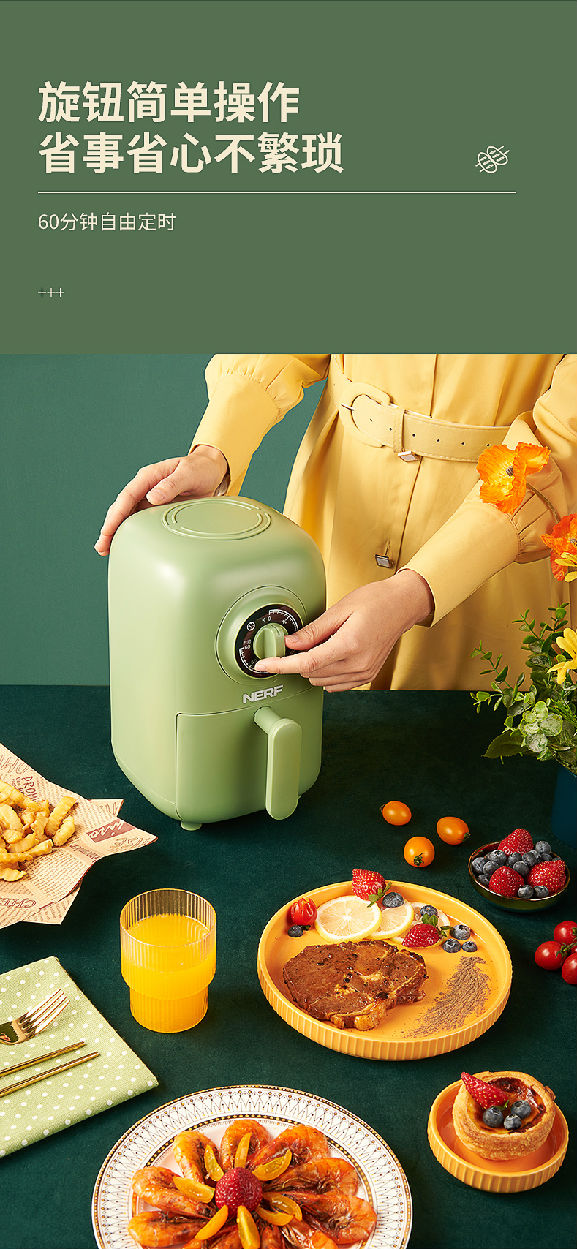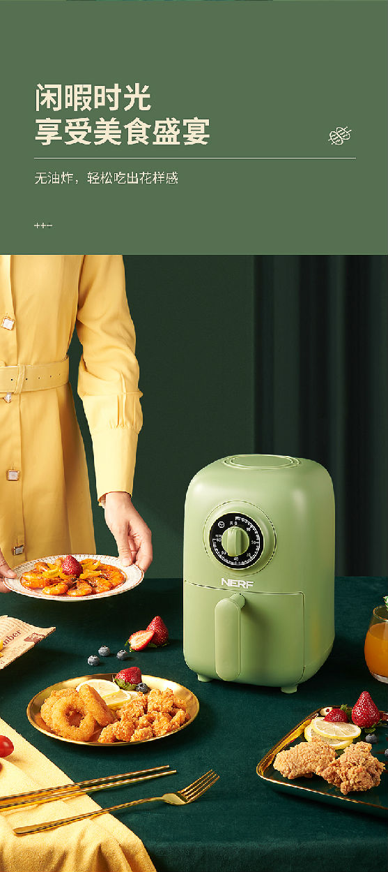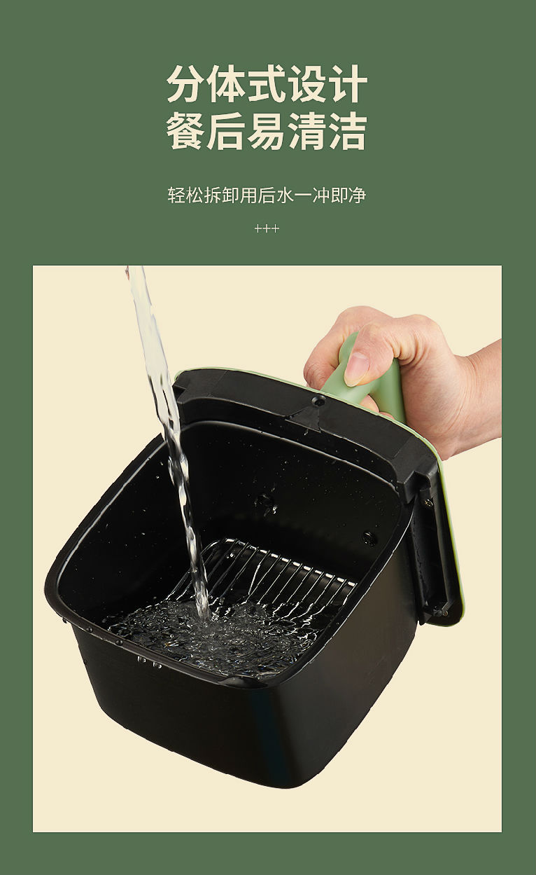 1.5L轻食容量,小巧易收纳,不占涂层易清洗,低脂少油更健康