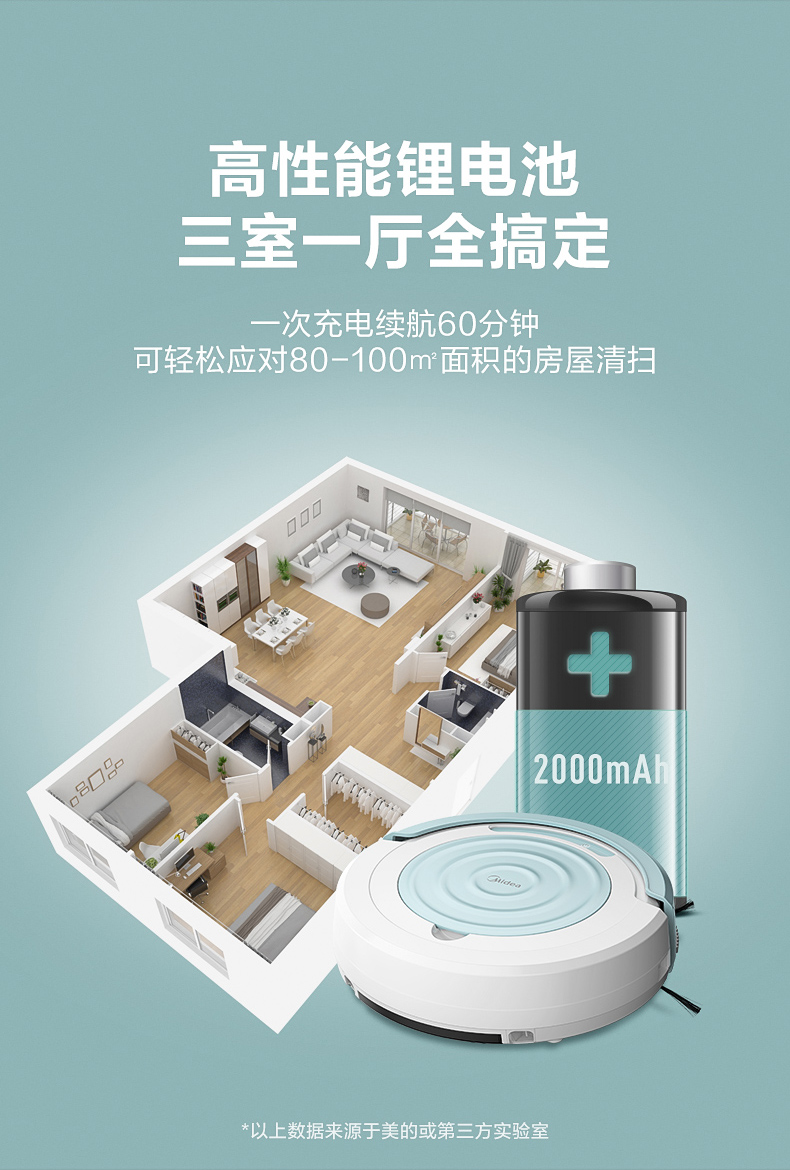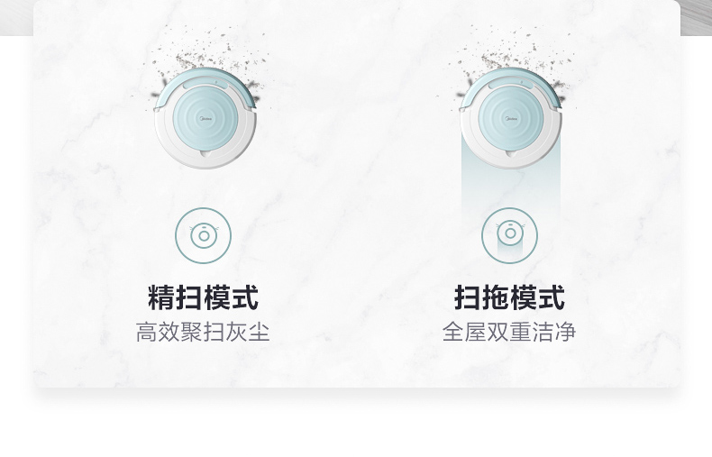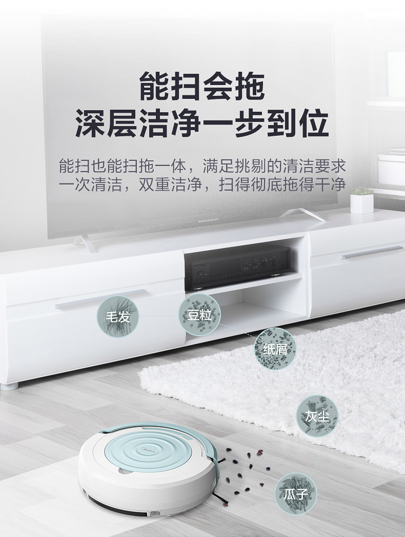 美的(Midea)扫地机器人R2TCN 扫拖一体机 环境感应 真空吸口 4种清扫模式