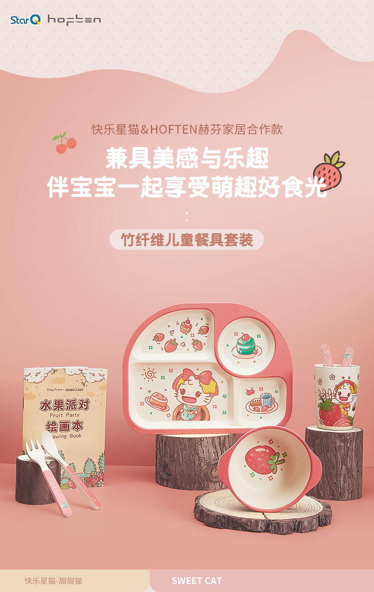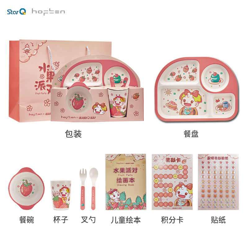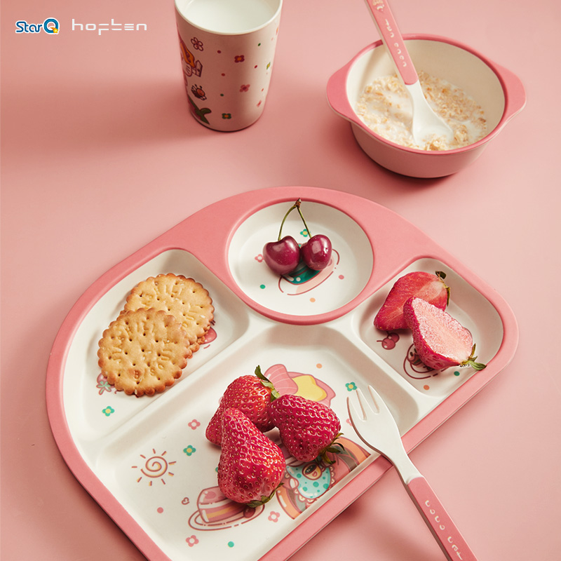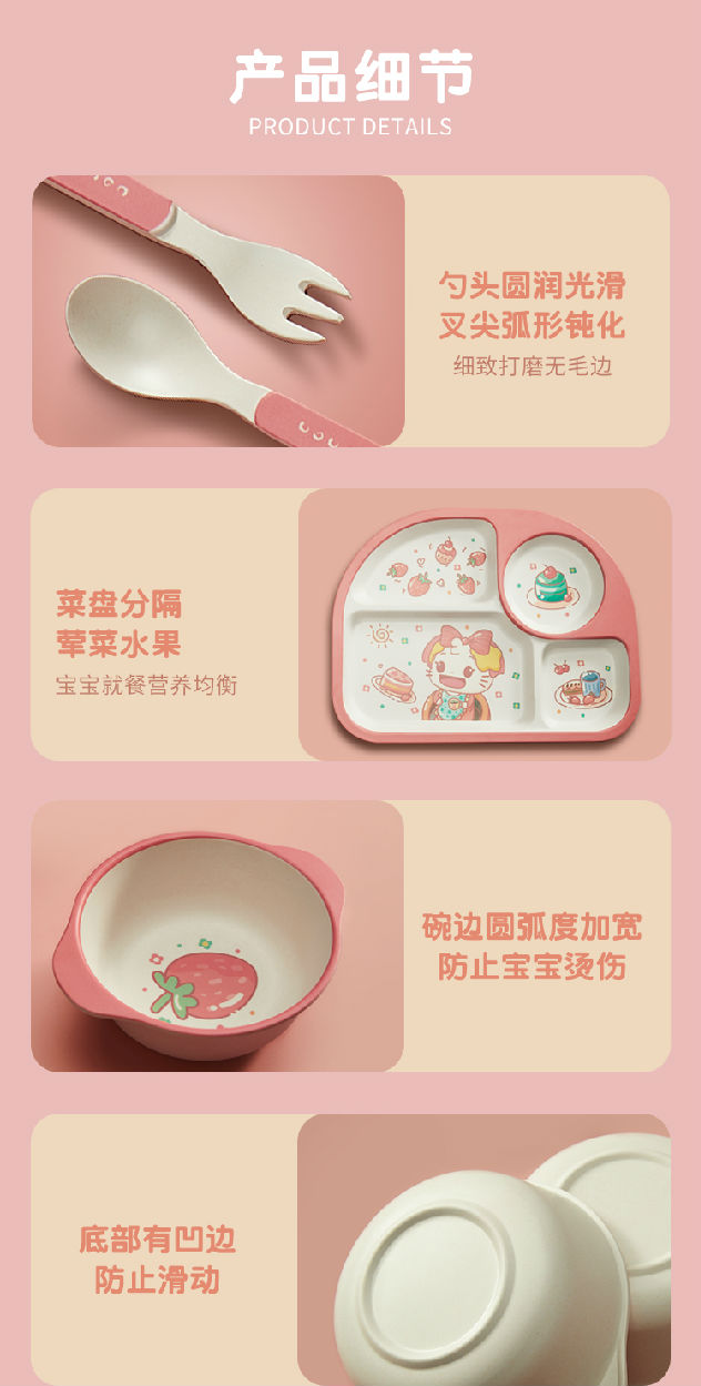 宝宝餐盘婴儿童餐具分格卡通环保竹纤维防摔吸盘式学吃饭辅食碗勺叉套装