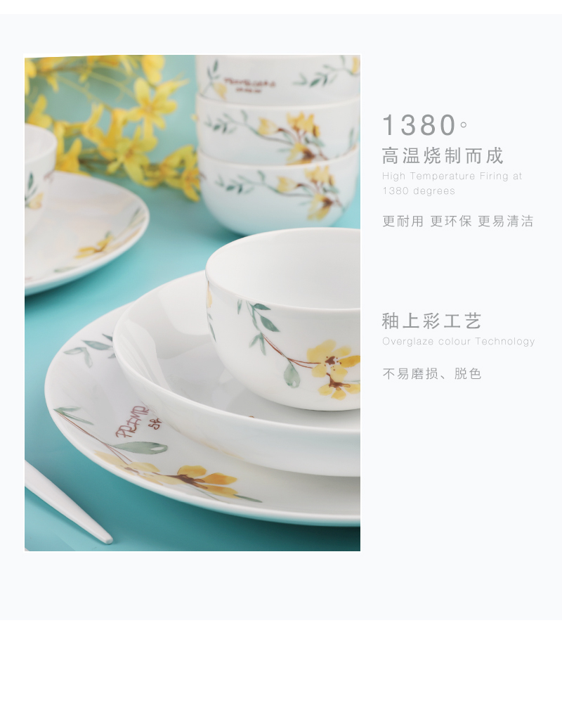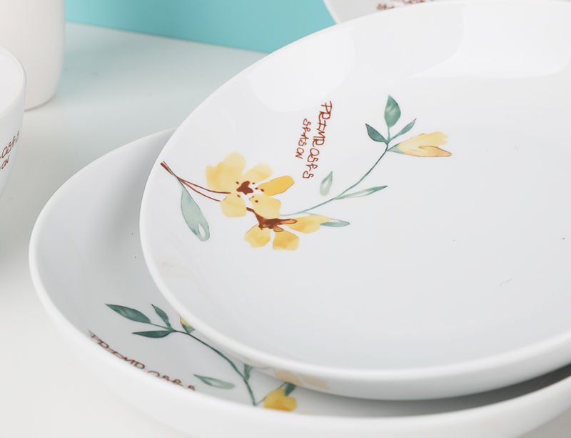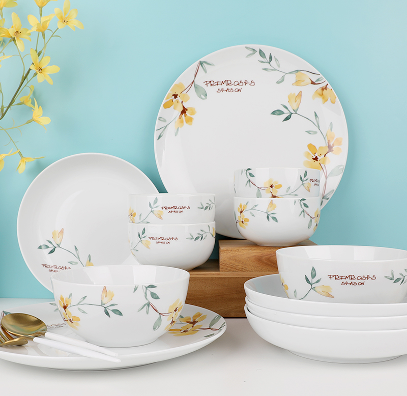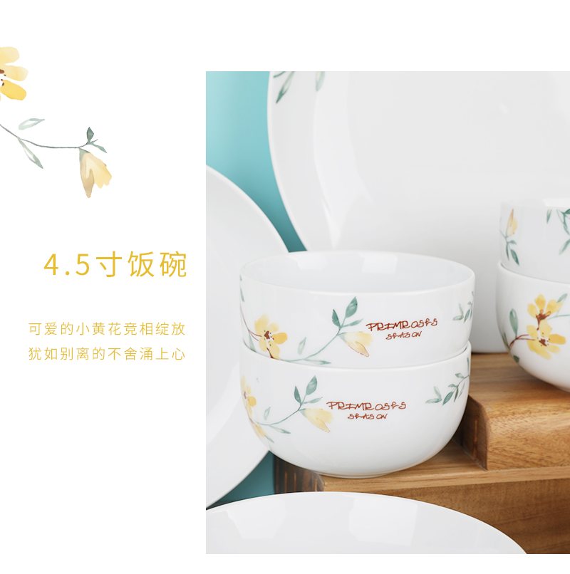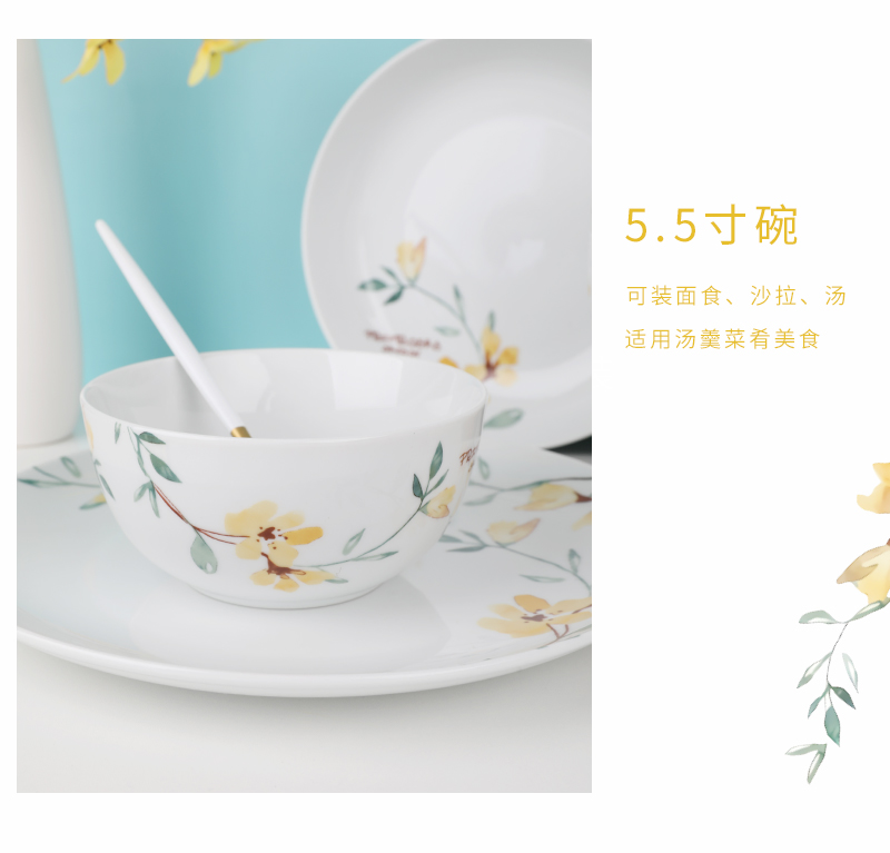北欧风创意家用陶瓷餐具组合简约小黄花小清新12件套