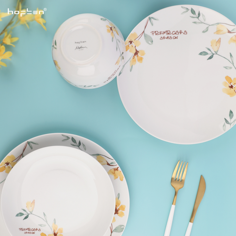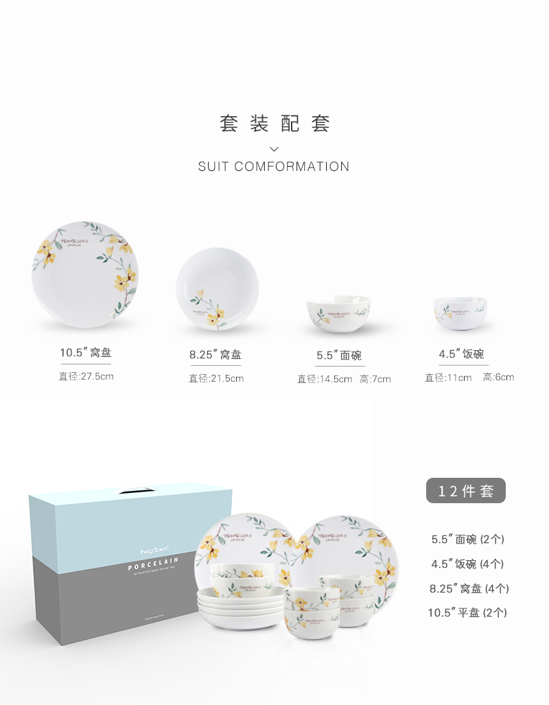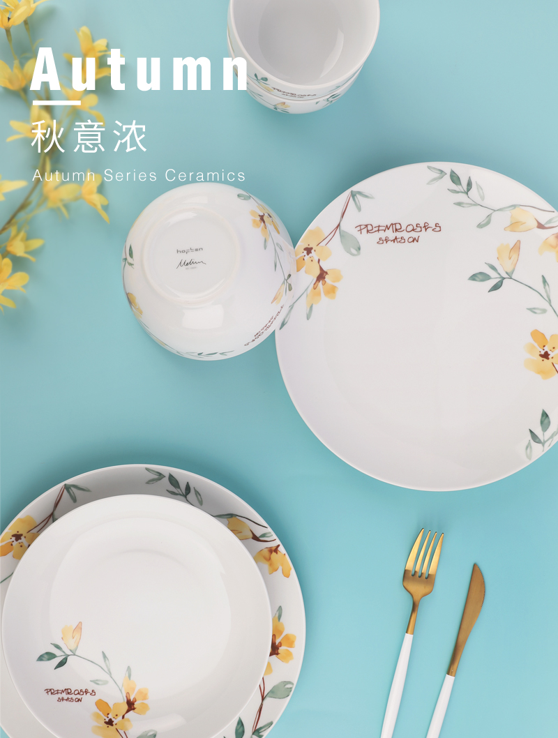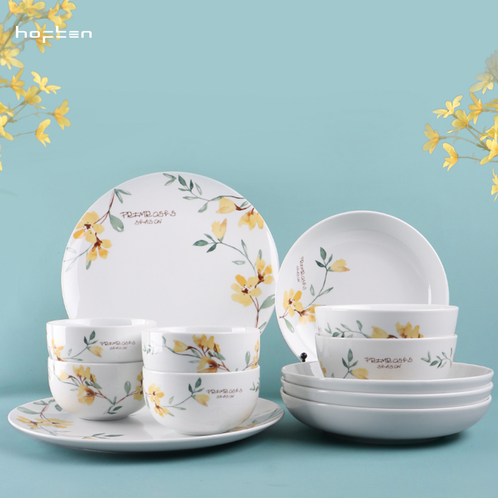 北欧风创意家用陶瓷餐具组合简约小黄花小清新12件套