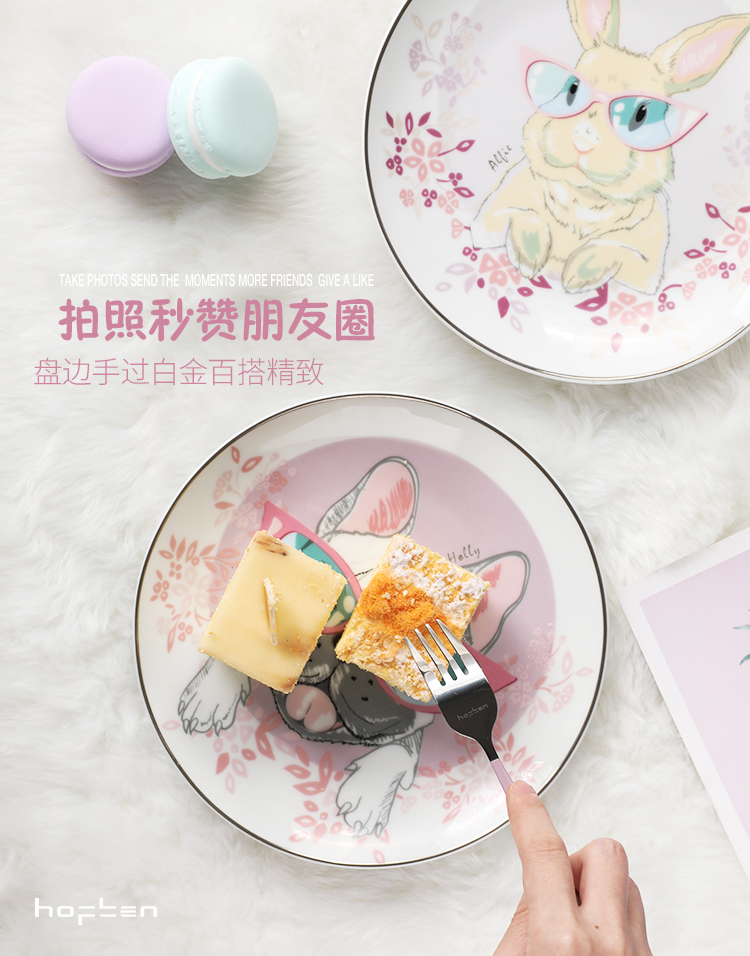 早餐盘卡通陶瓷餐具 可爱家用送礼甜品碟子日式动漫原型下午茶盘