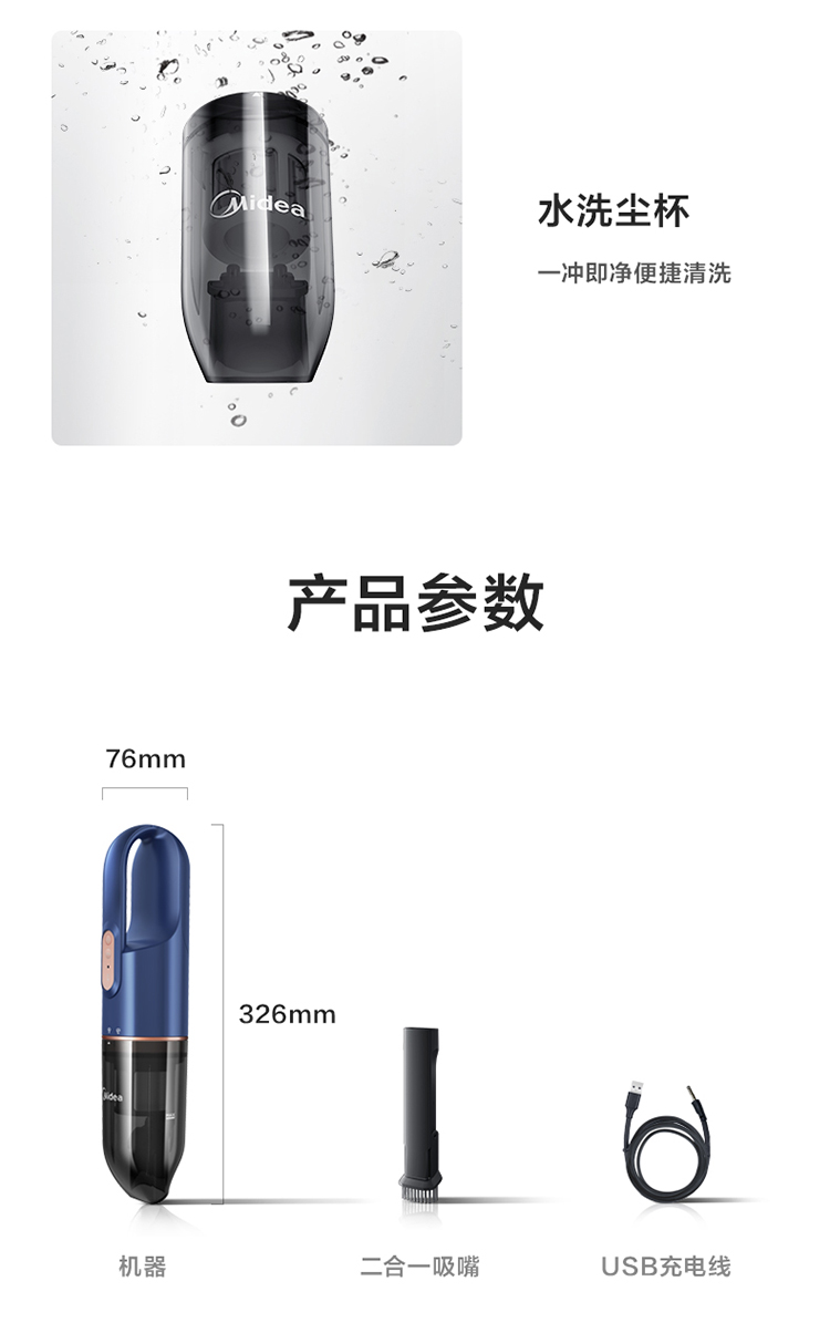 美的(Midea)干湿吹三用式 无线吸尘器 HDC10蓝色