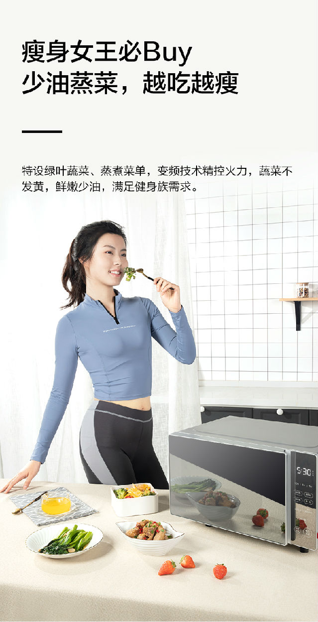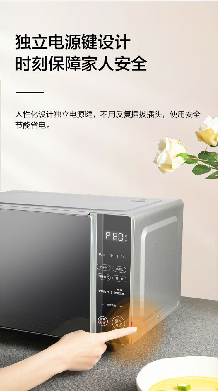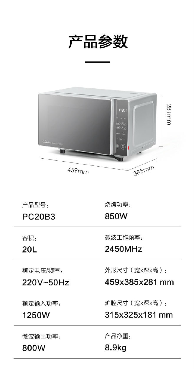 美的(Midea)家用多功能微波炉20升 微烤一体机 智能解冻 大平板均匀加热 PC20B3