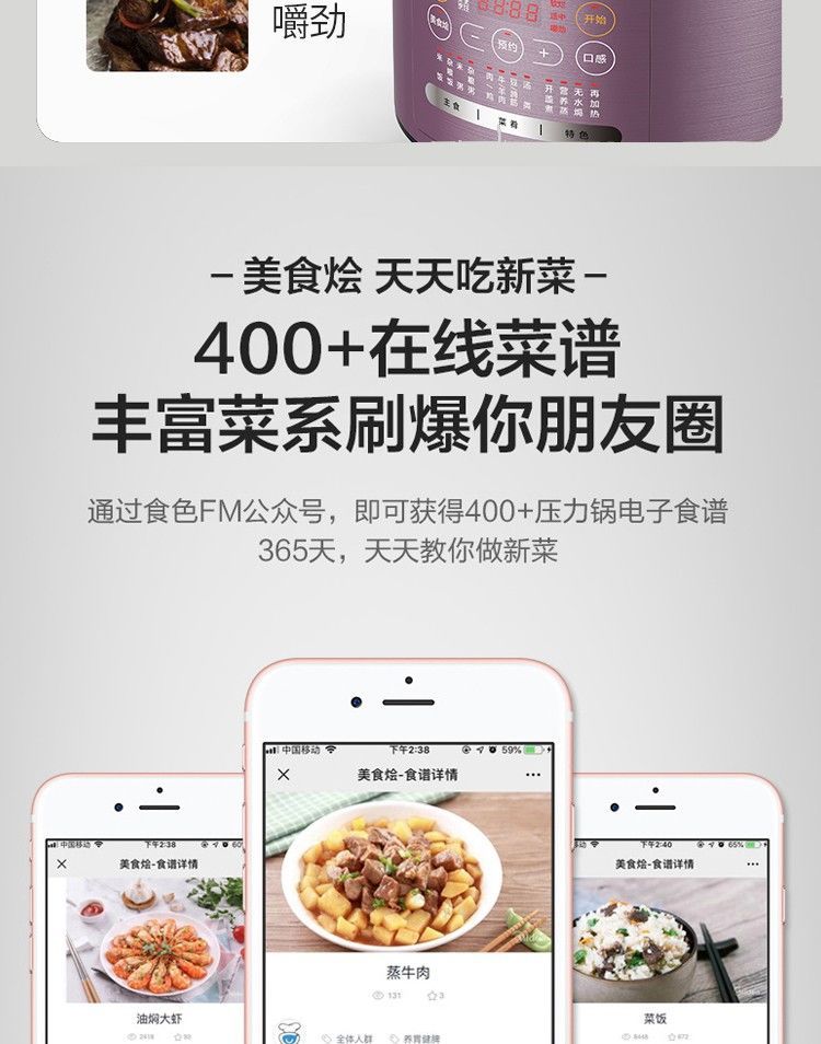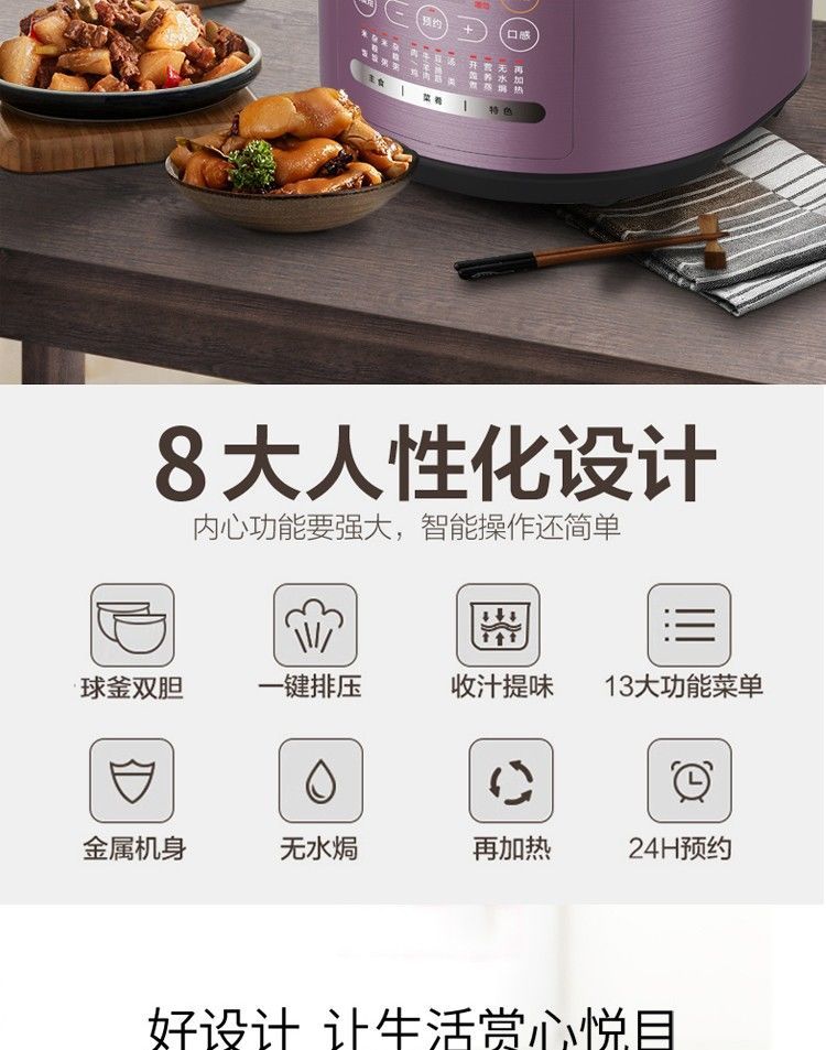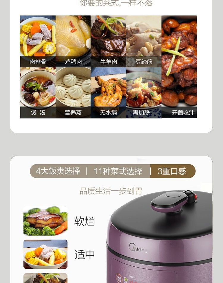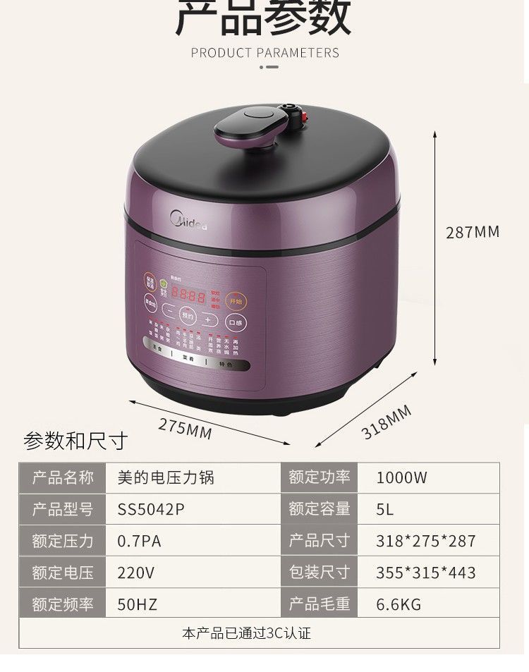 美的(Midea)电压力锅多功能高压锅5L 一锅双胆 智能预约MY-SS5042P MY-SS5042P