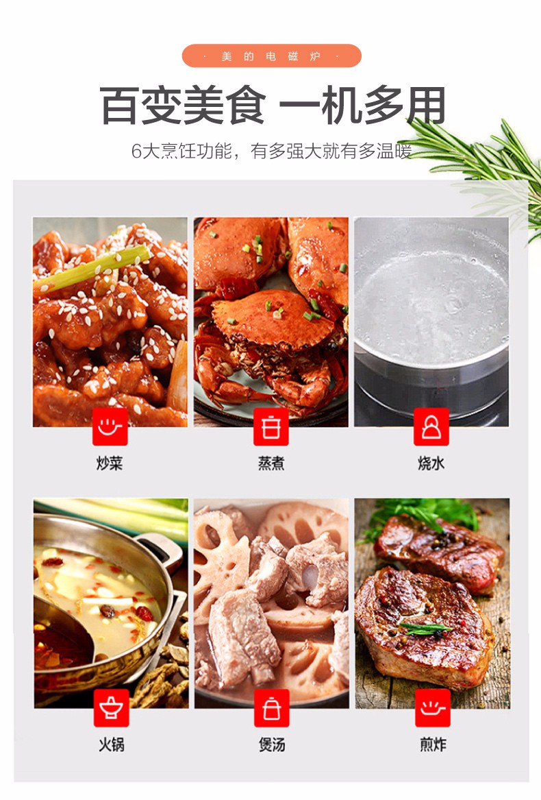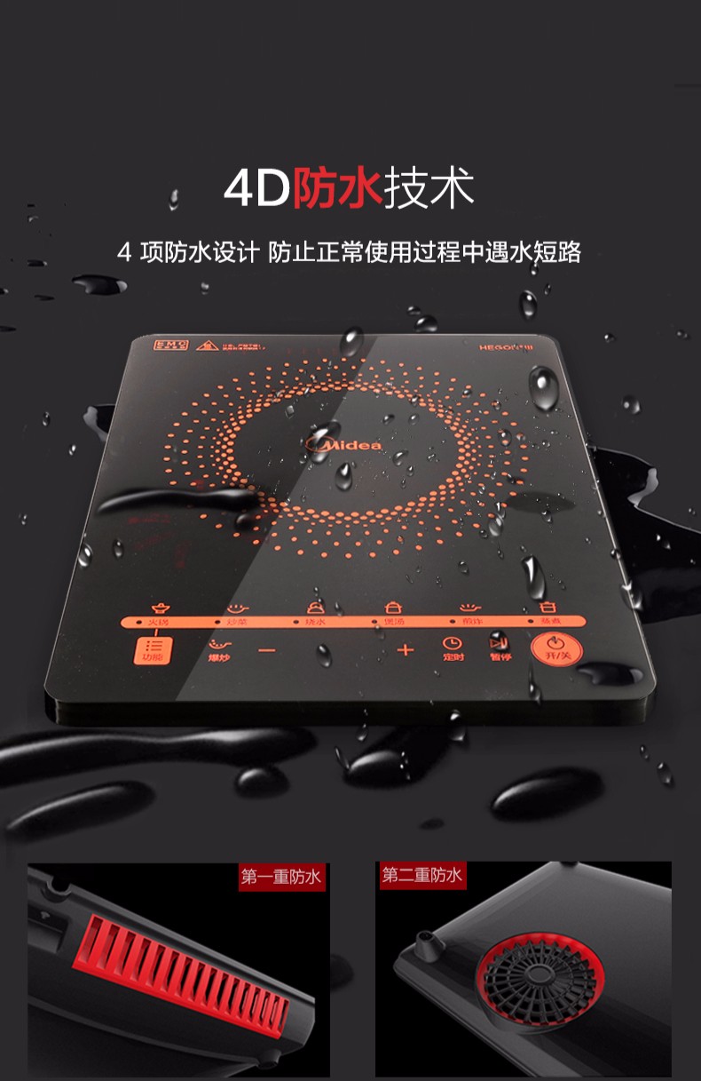 美的(Midea)电磁炉多功能大功率 触控黑晶面板 智能暂停 4D防水 C21-RT2171