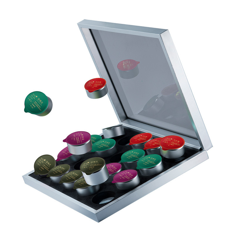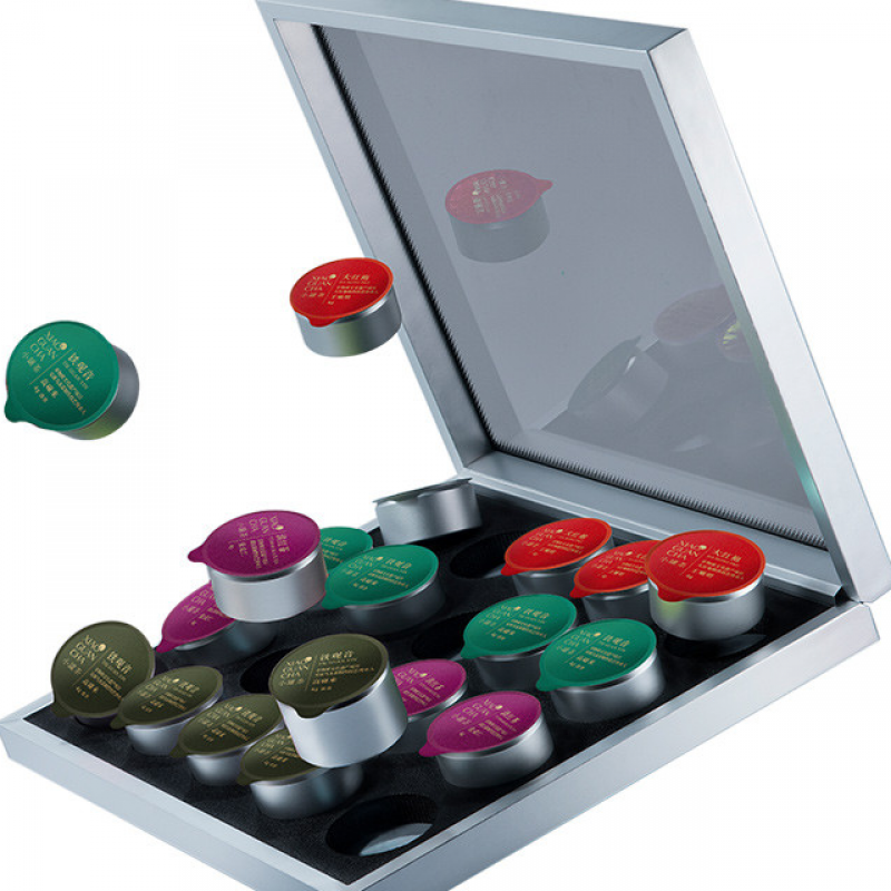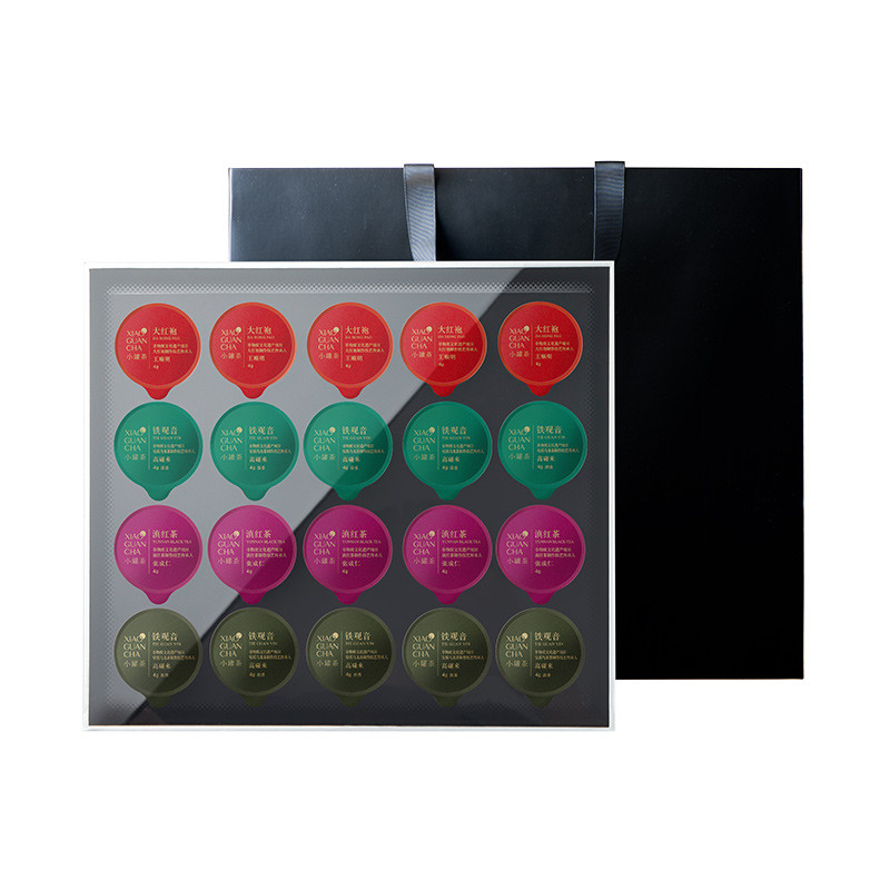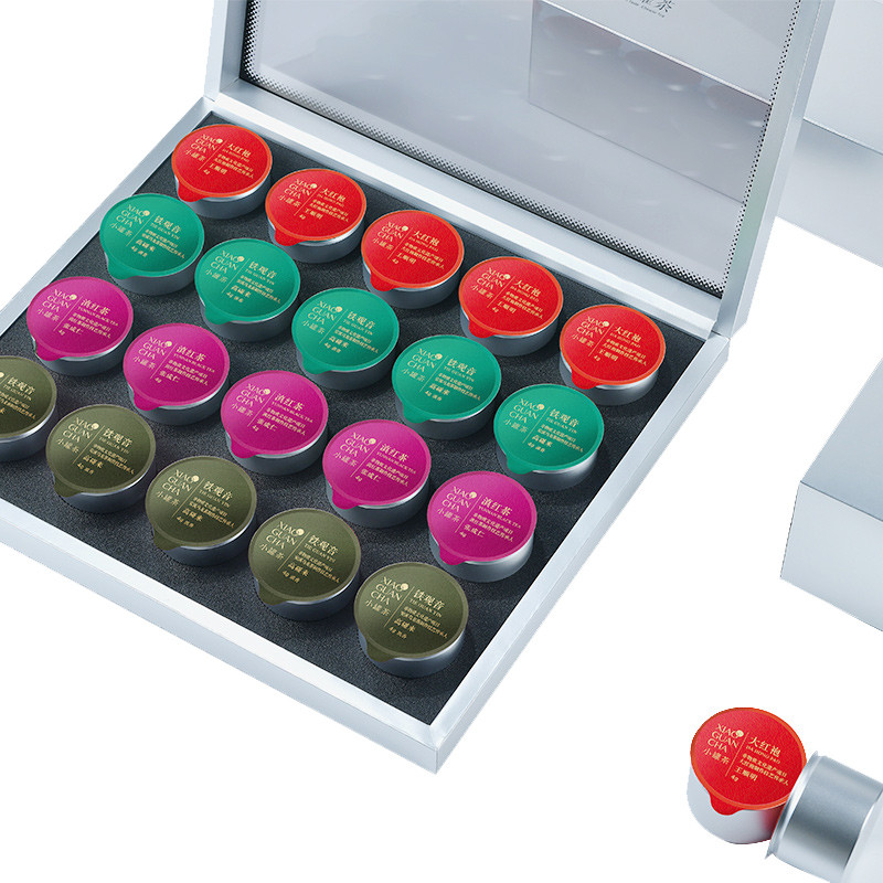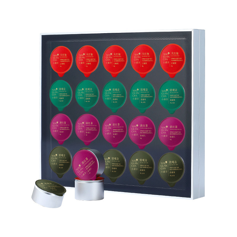 2.500数量可以定正品制礼盒,低于500数量,如需定制,可不干胶贴来展示。