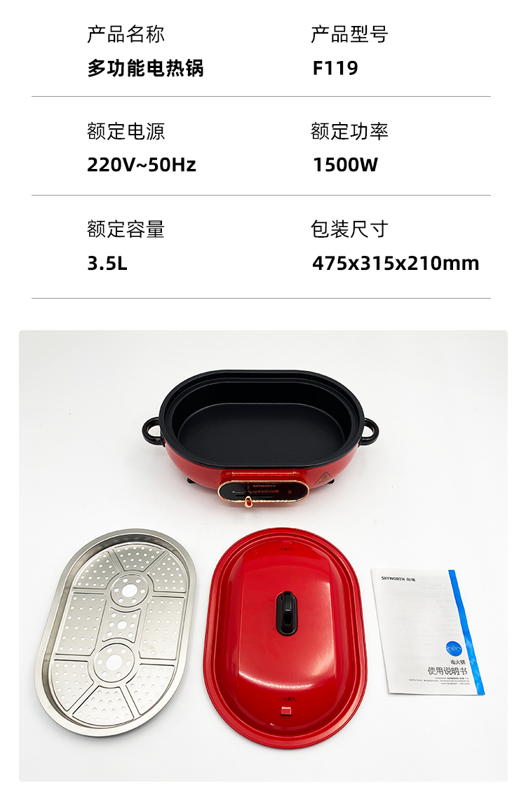 创维skyworth多功能料理锅3.5L大容量韩式蒸煮火锅学生家用多用一体锅