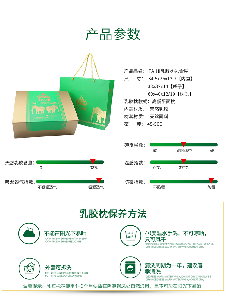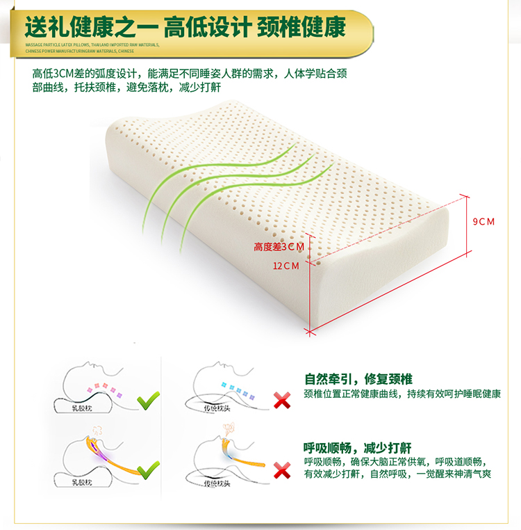 泰国原装进口天然乳胶枕头_高低平面枕礼盒装(10-12cm)