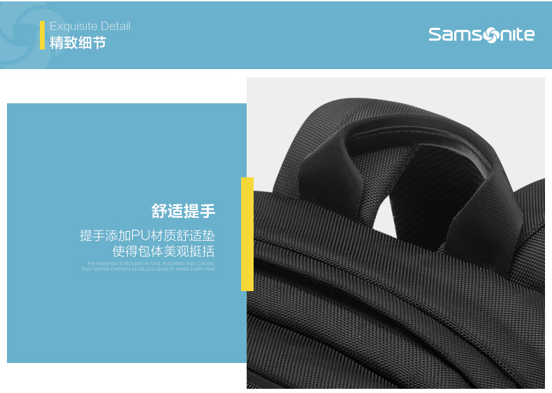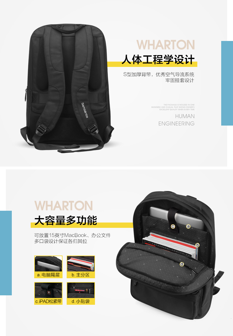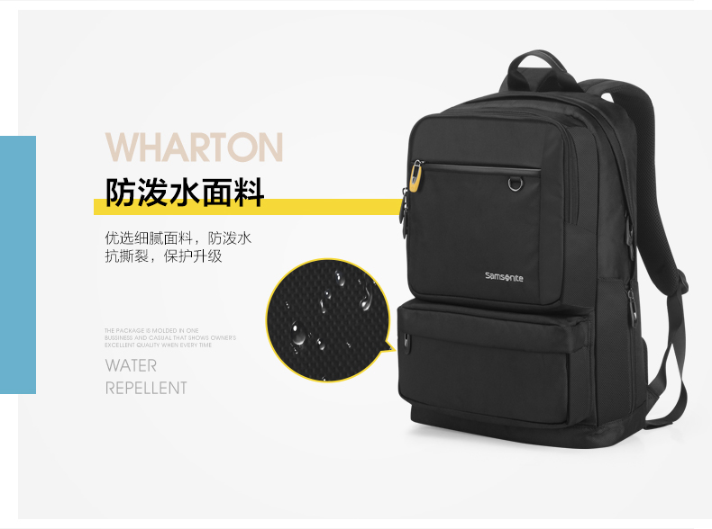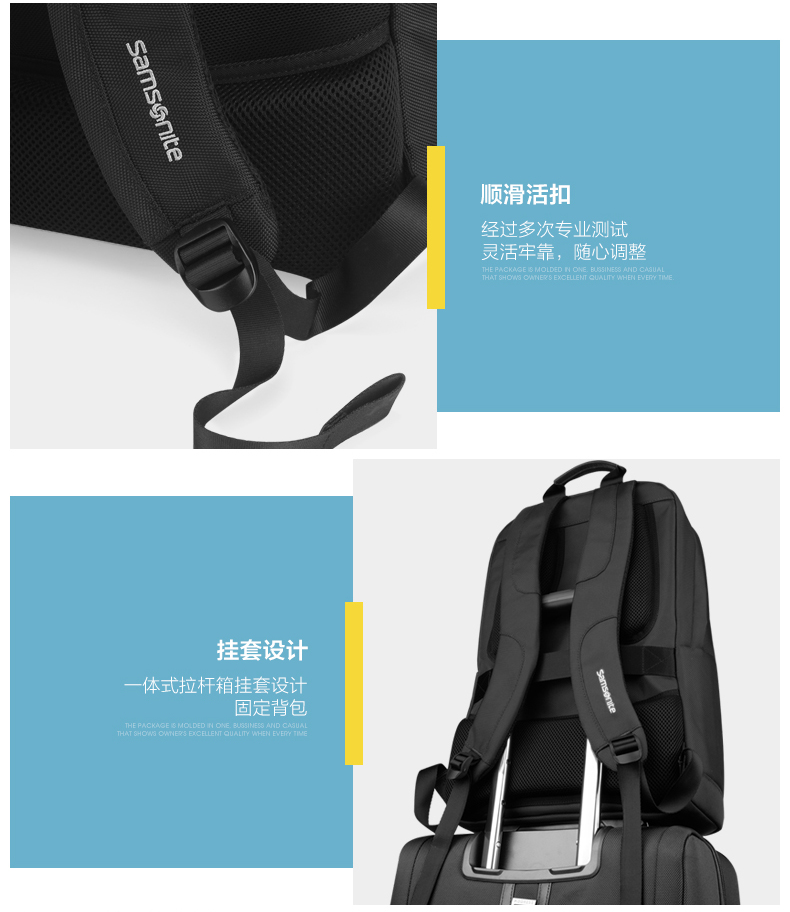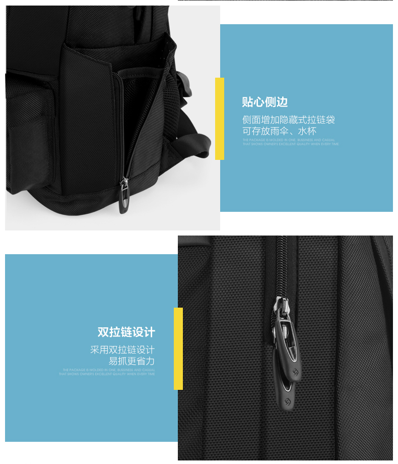 防泼水设计,大容量双肩包,人体工程学设计,S型加厚型背带,优秀空气导流系统,牢固挂套设计,都市休闲商务设计、精致的细节点缀、填充的电脑套及IPAD隔层、方便取放物品的前口袋、方便的侧口袋、可挂套功能、填充的电脑背带。