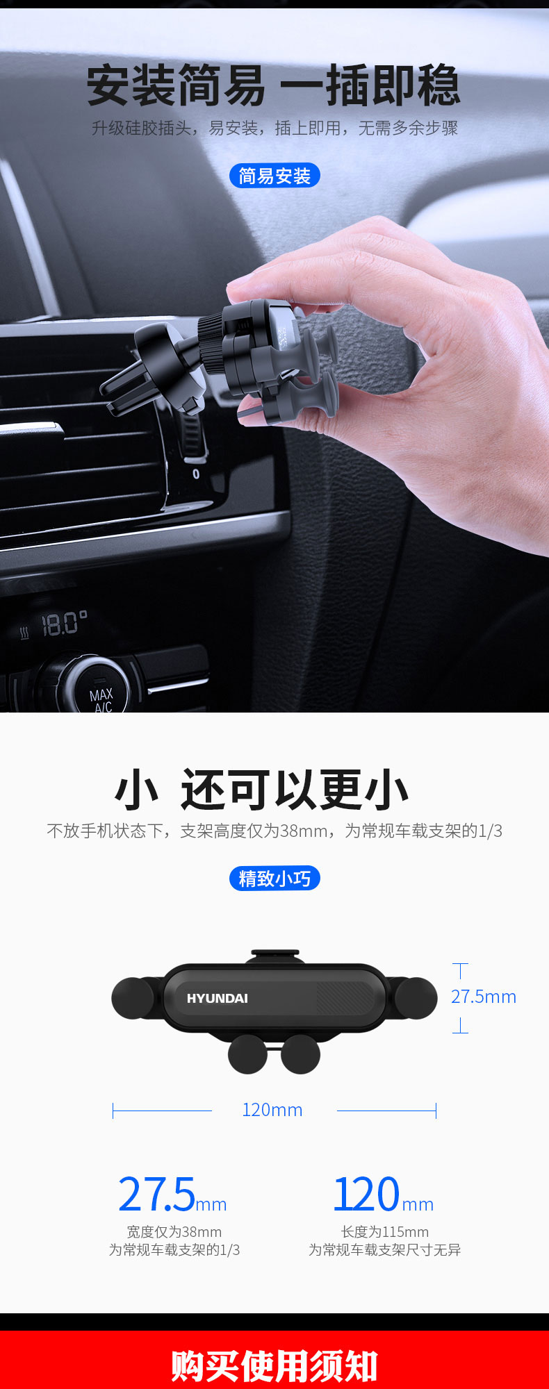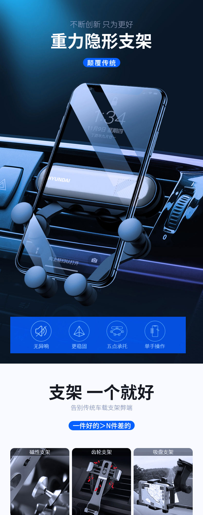 现代HYUNDAI-一条简约重力车载支架