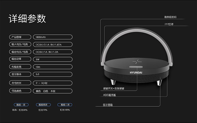 产品品牌:HYUNDAI产品型号:YH-C009颜 色:白色/木纹色产品材质:ABS
