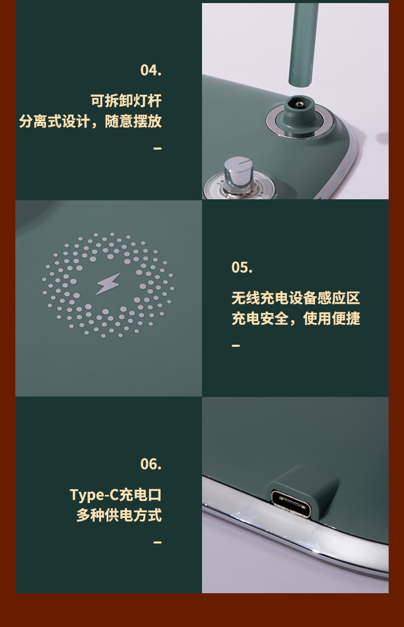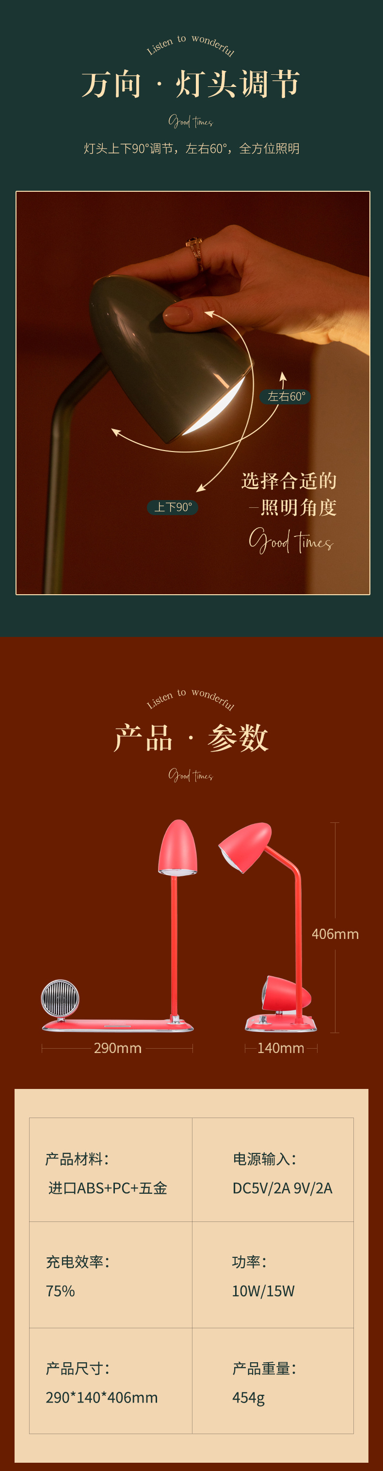 充电模式:直充无线充功率:15W台灯调节方式:旋转