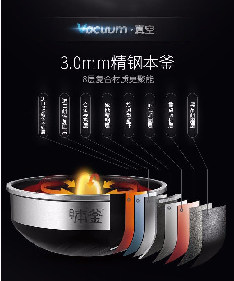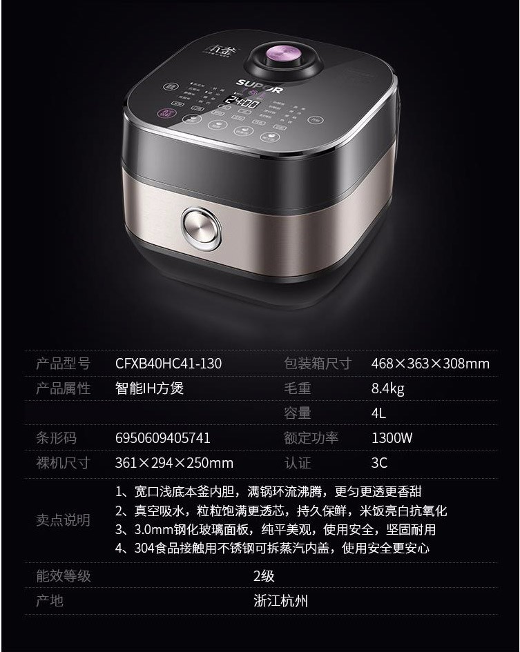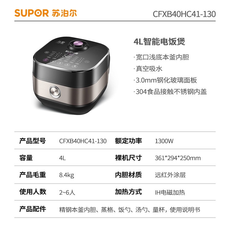 苏泊尔 (SUPOR )4L真空烹饪电饭煲精钢本釜内胆IH电磁加热智能预约特设腌制功能CFXB40HC41